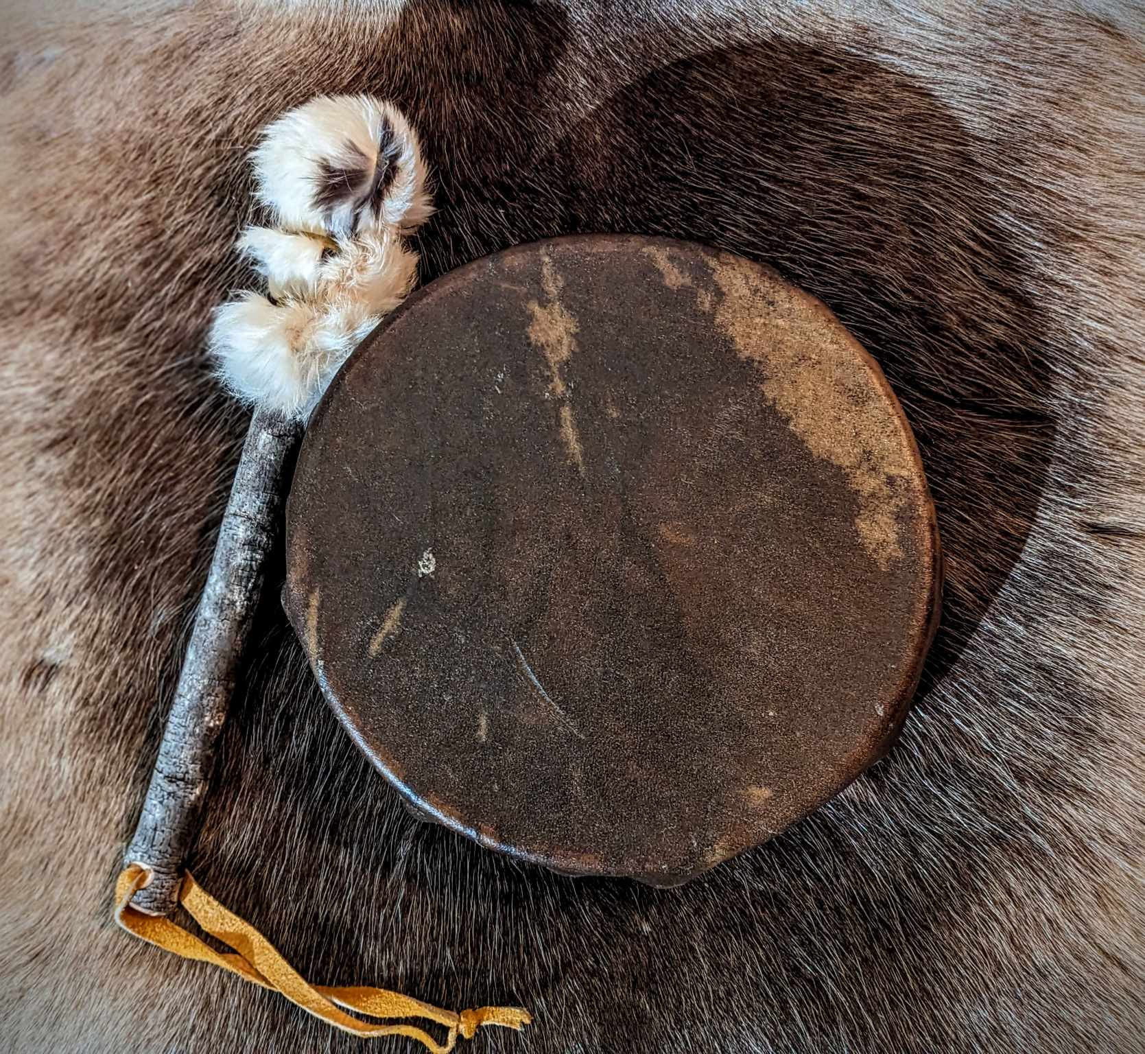 10 Inch Moose Hide Drum With Rabbit Fur Beater