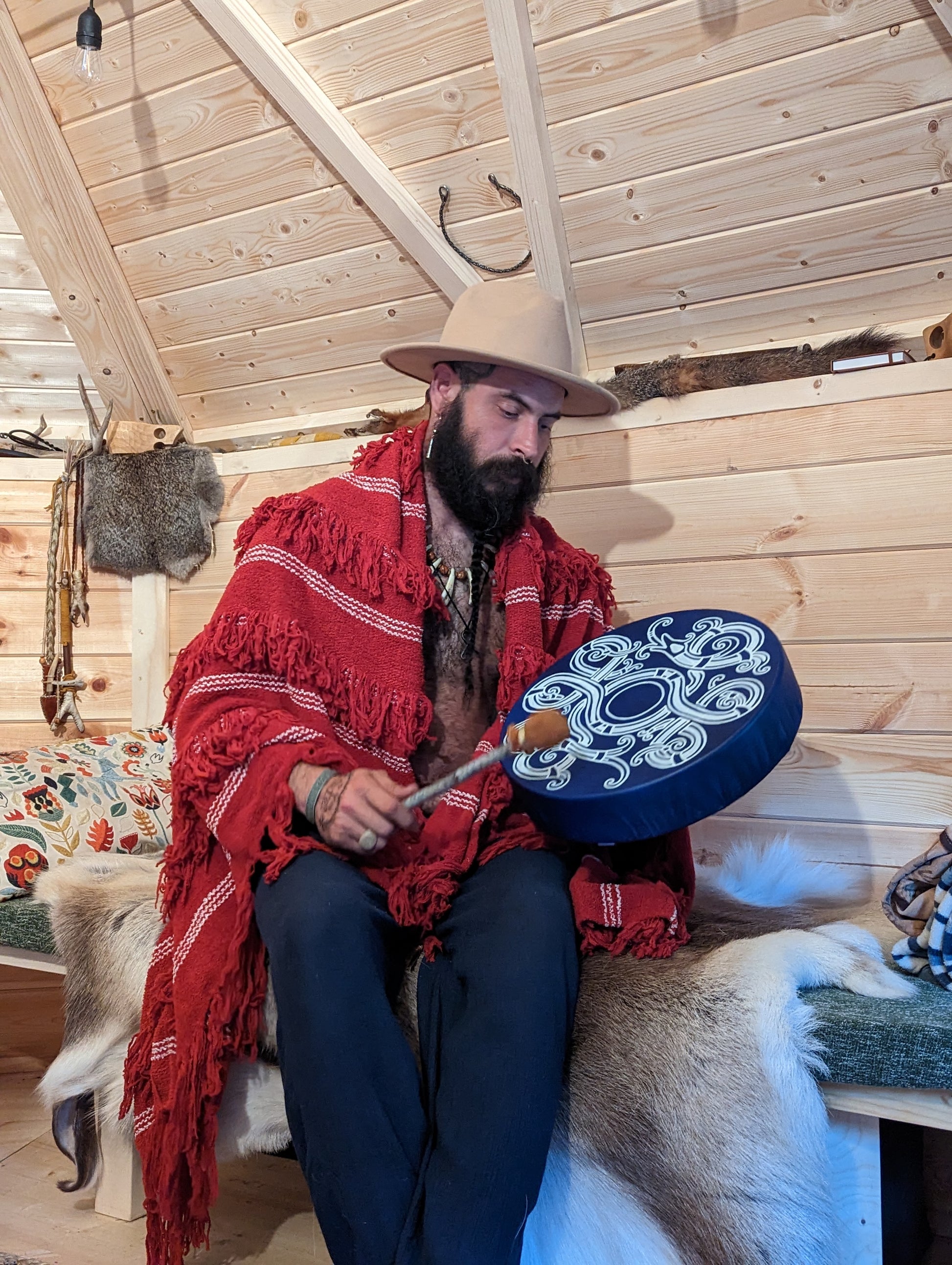 14 Inch Blue Deer Hide Shaman Drum with Beater | Jormungandr Drum | Dragon Drum