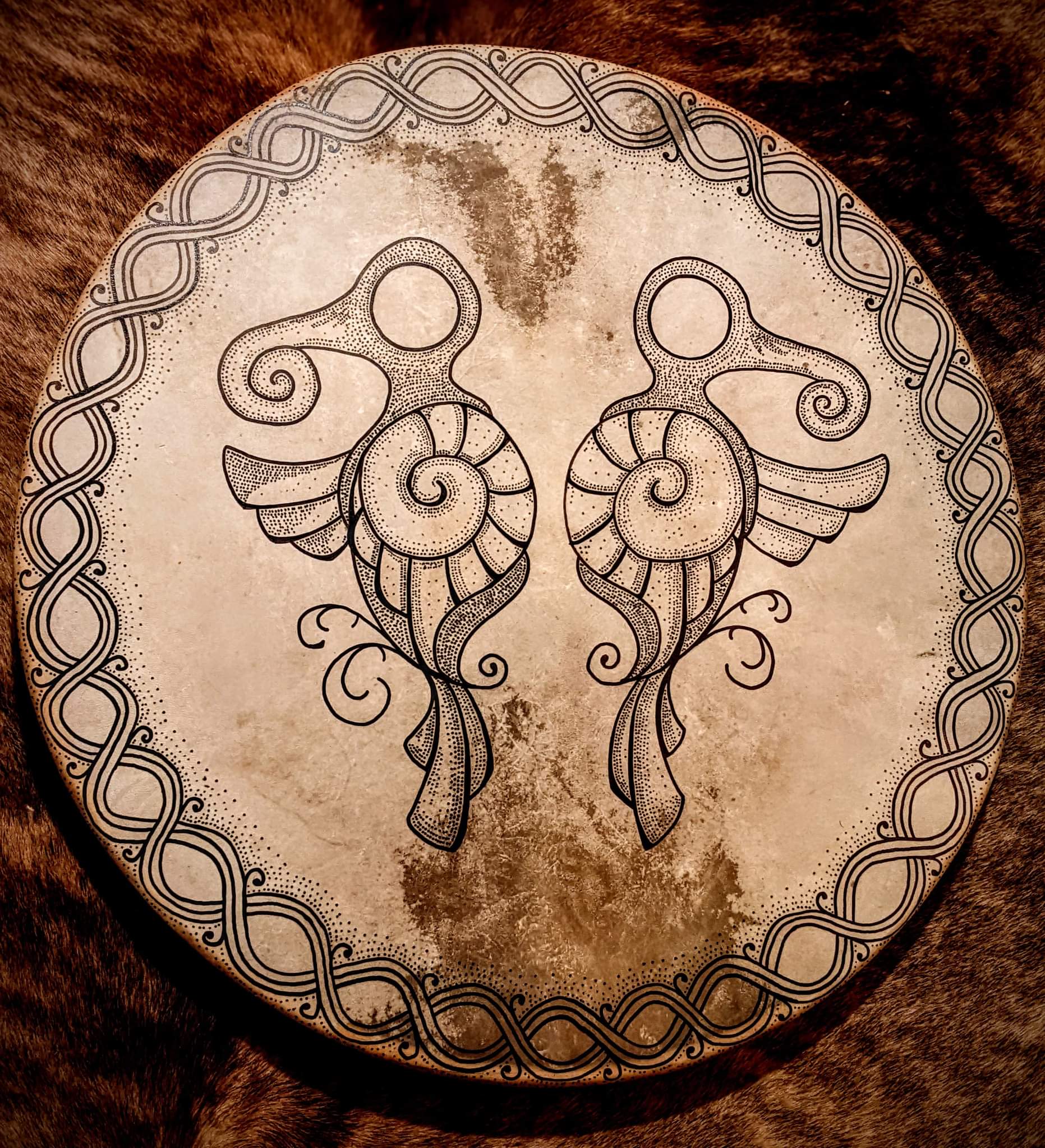 30 Inch Goat Hide Hugin Munin Raven Drum | Pre-Viking Age Art | Norse Pagan Shaman Drum