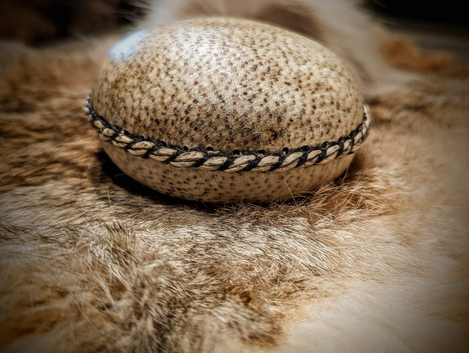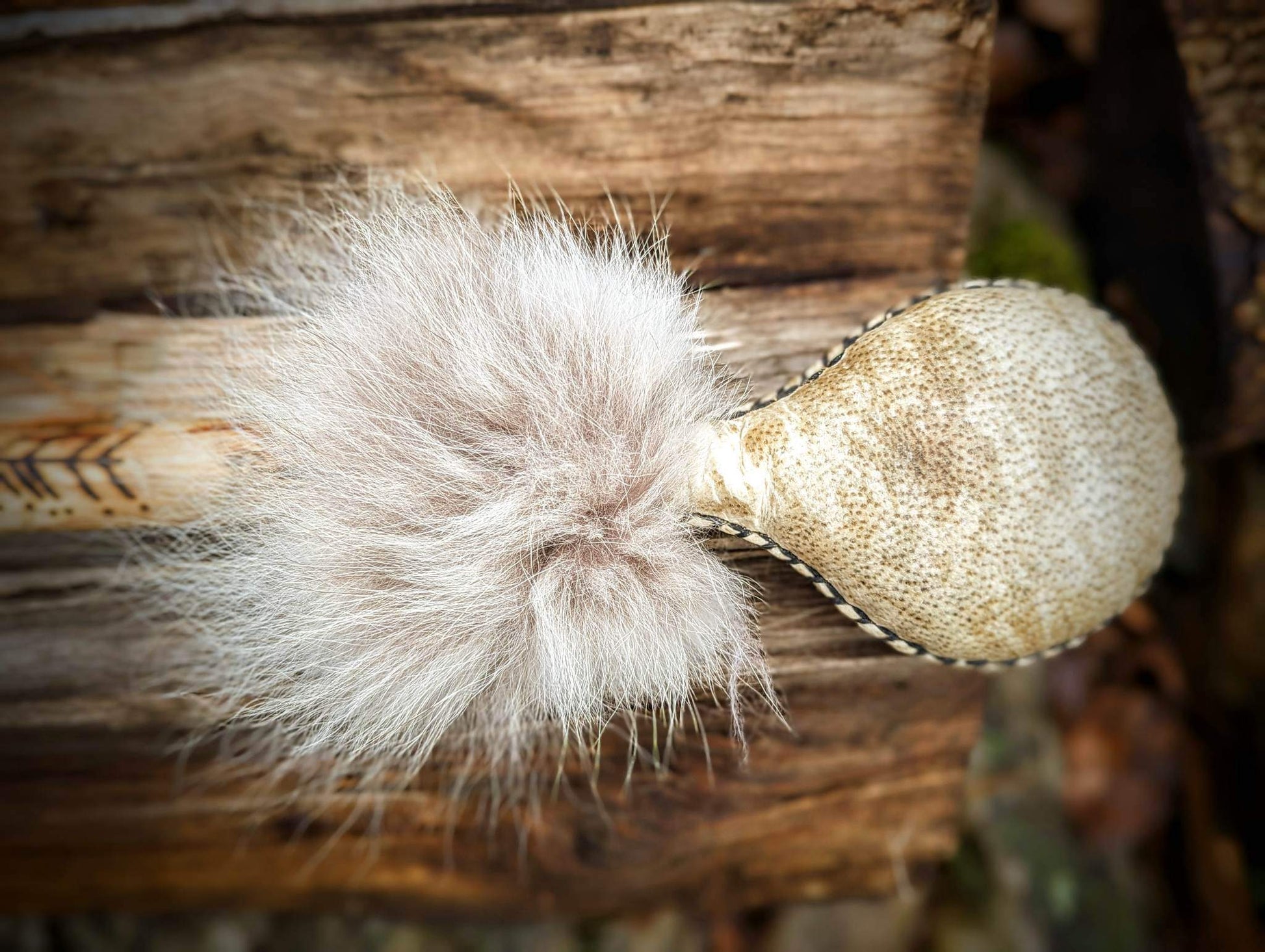 Bear Hide Shaman Rattle with Wolf Fur and Deer Antler