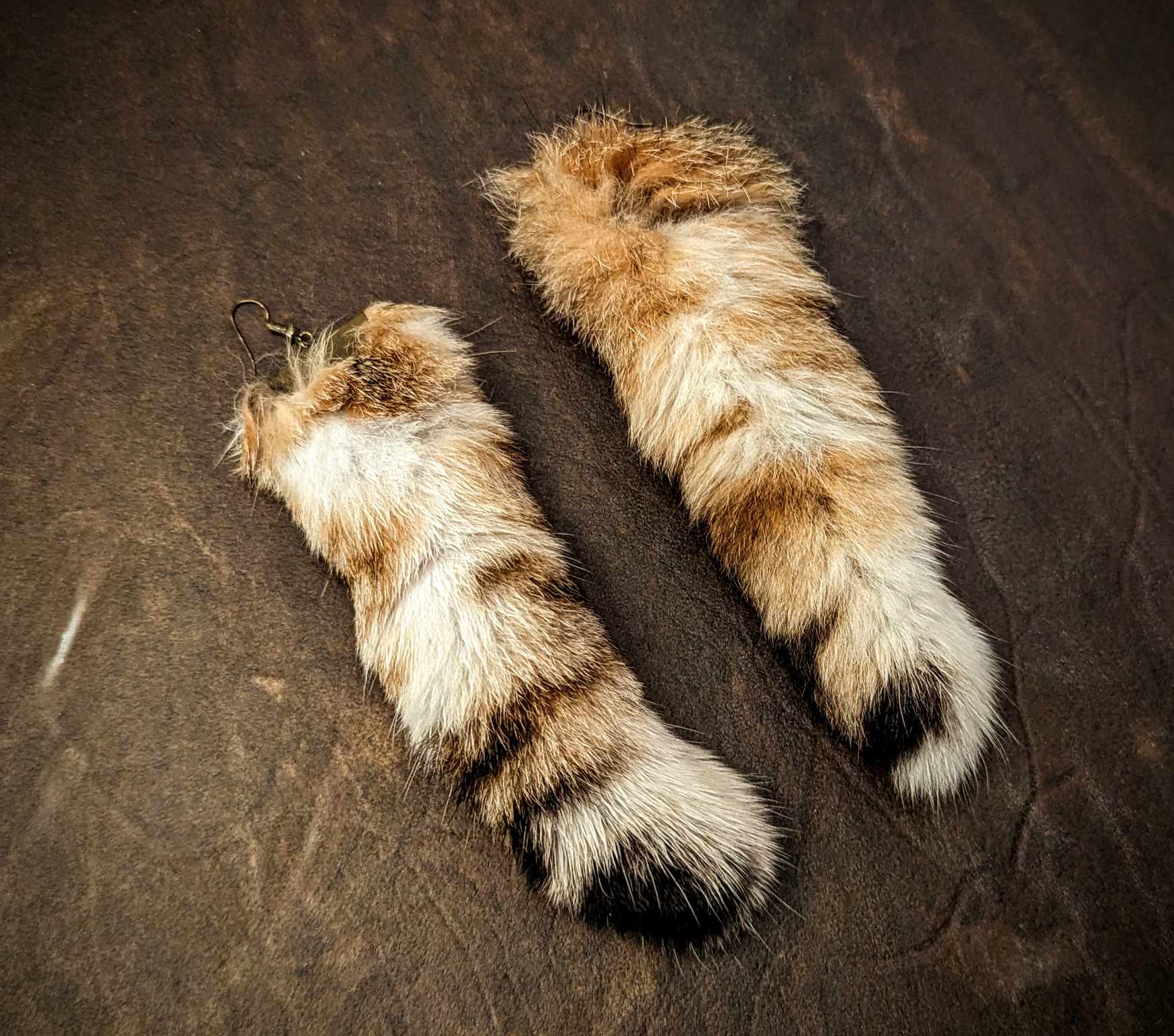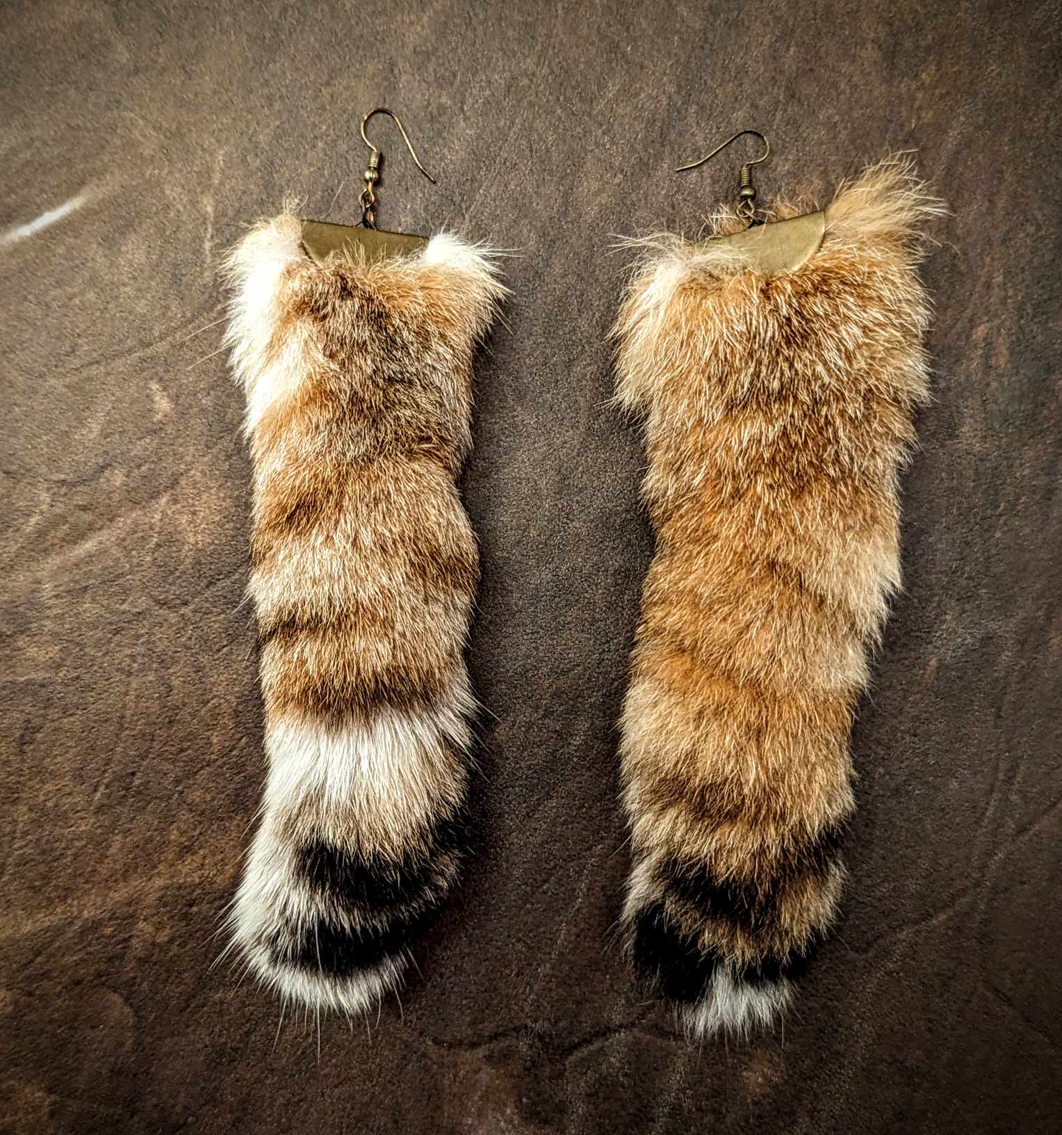 Bobcat Tail Earrings | Genuine Bobcat Fur Brass Jewelry