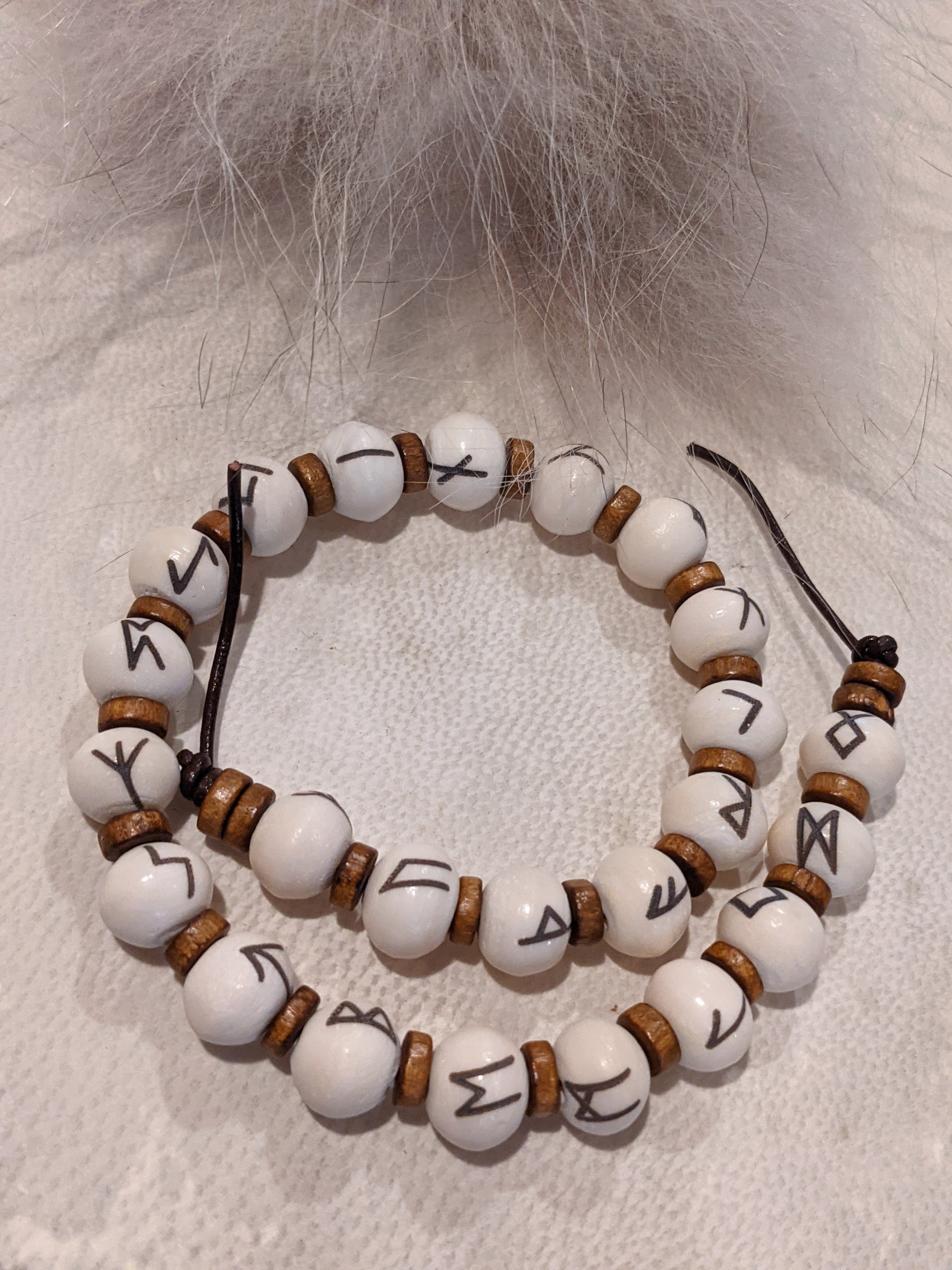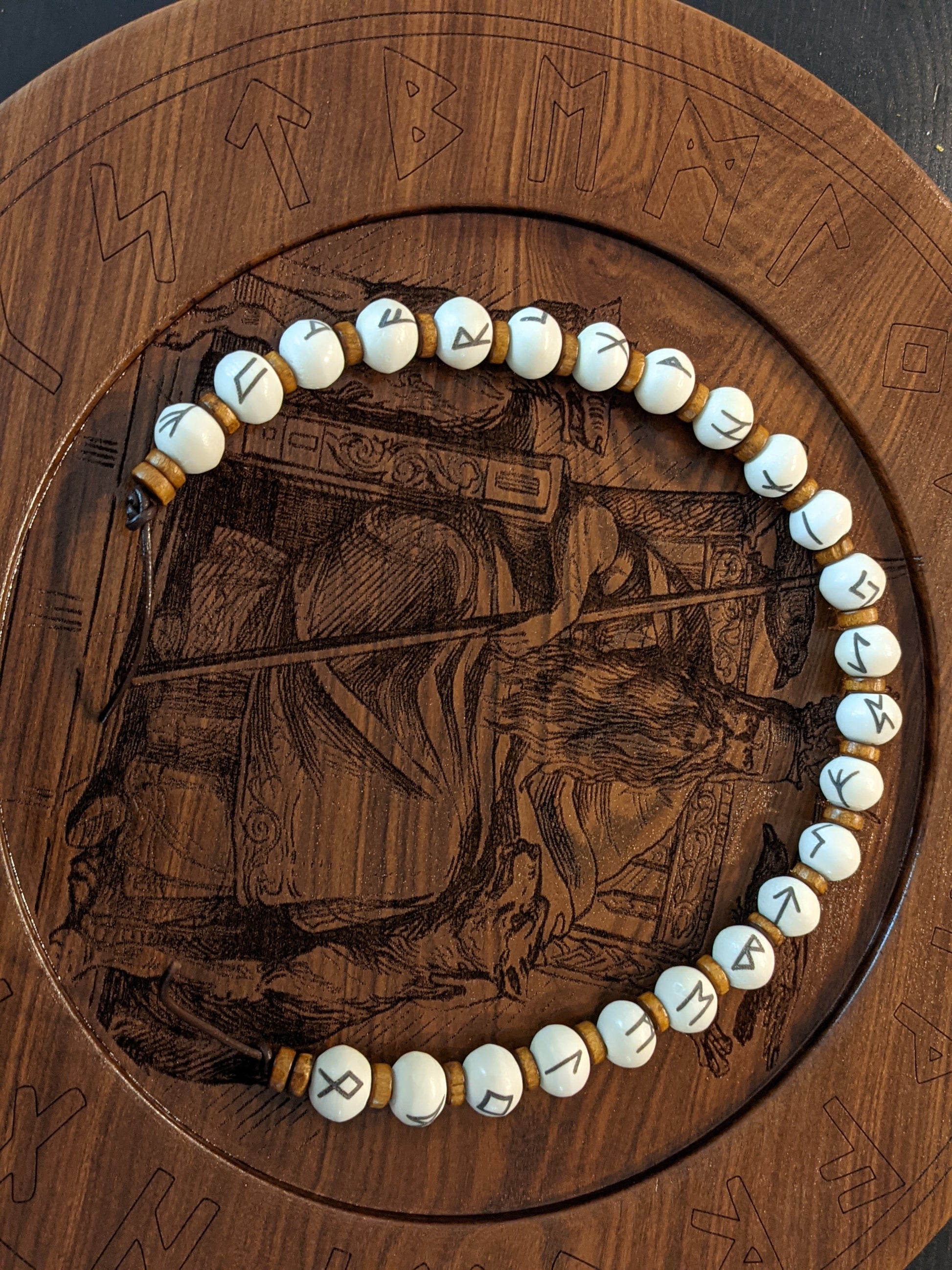 Bone Heathen Runic Meditation Beads Rune Bead Strand Shaman Asatru Volva Galdr Chain