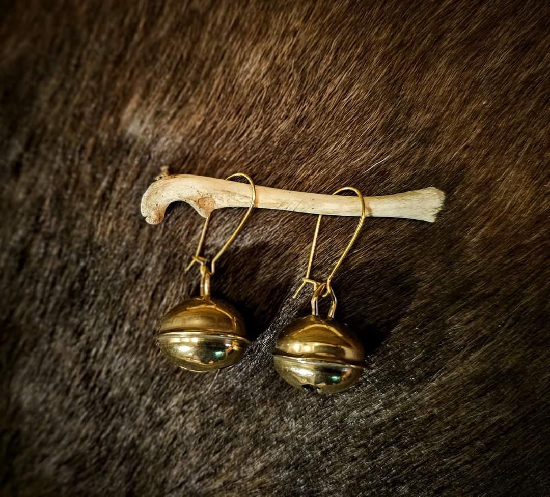 Old world style brass hawk bells made in Germany, used in falconry through the ages, on gold toned nickel free loop earwires.