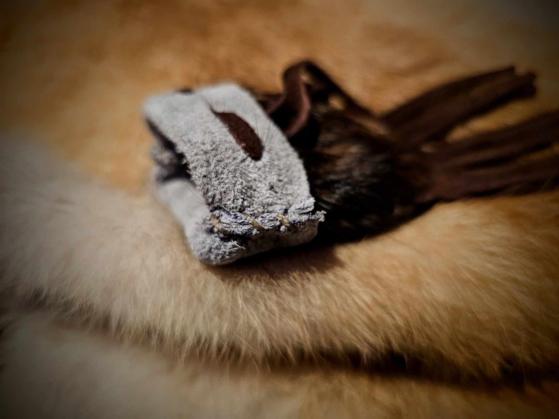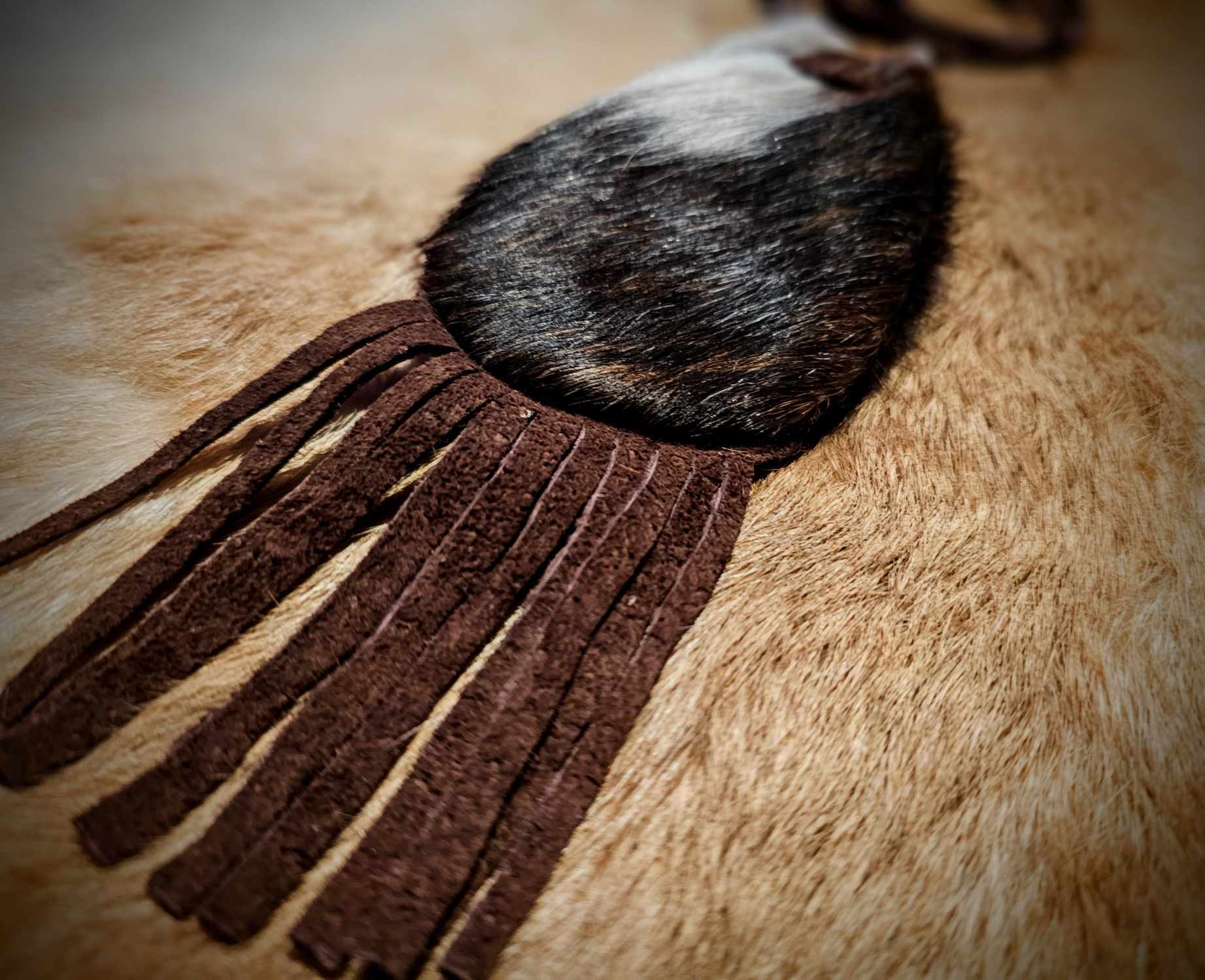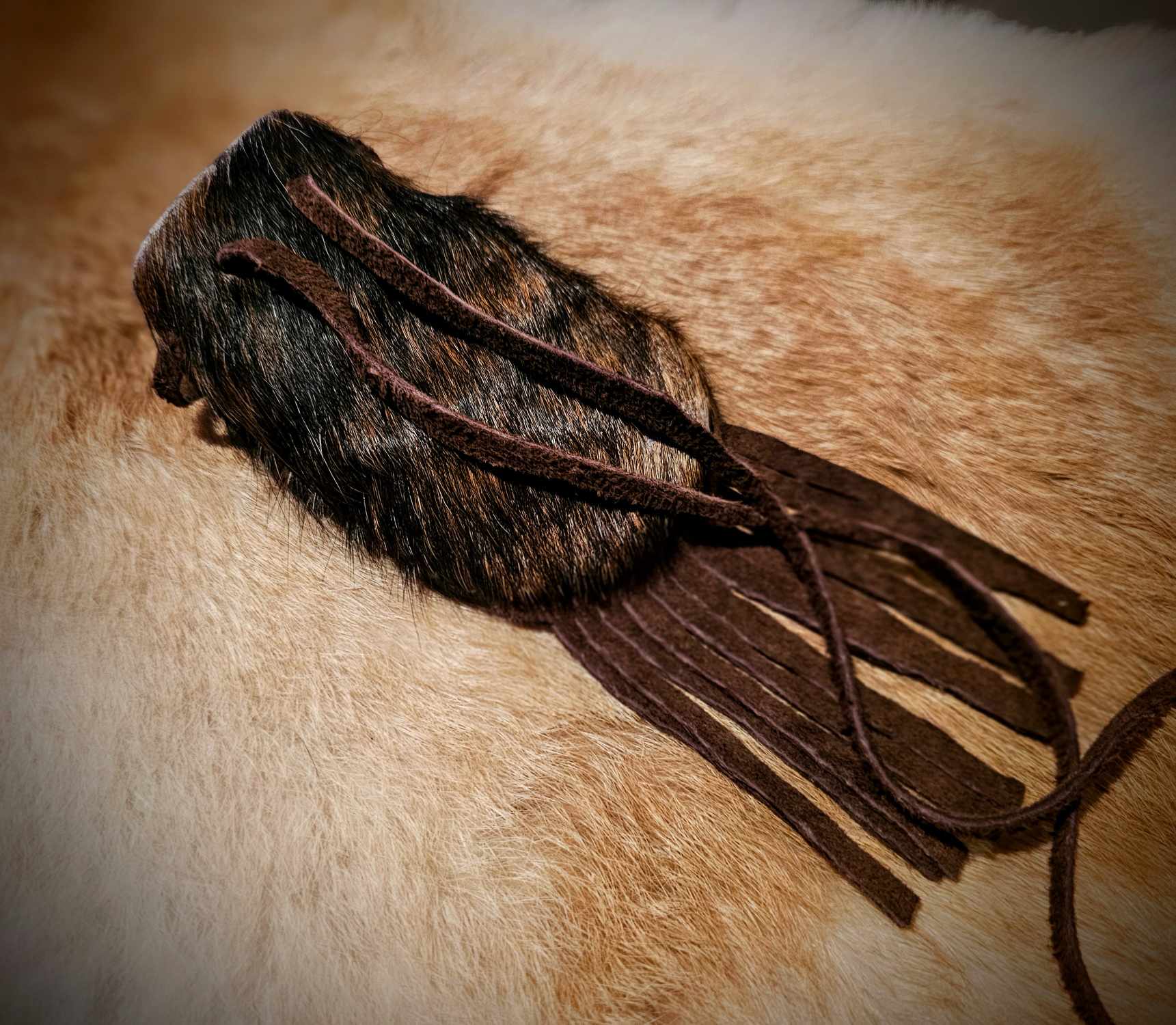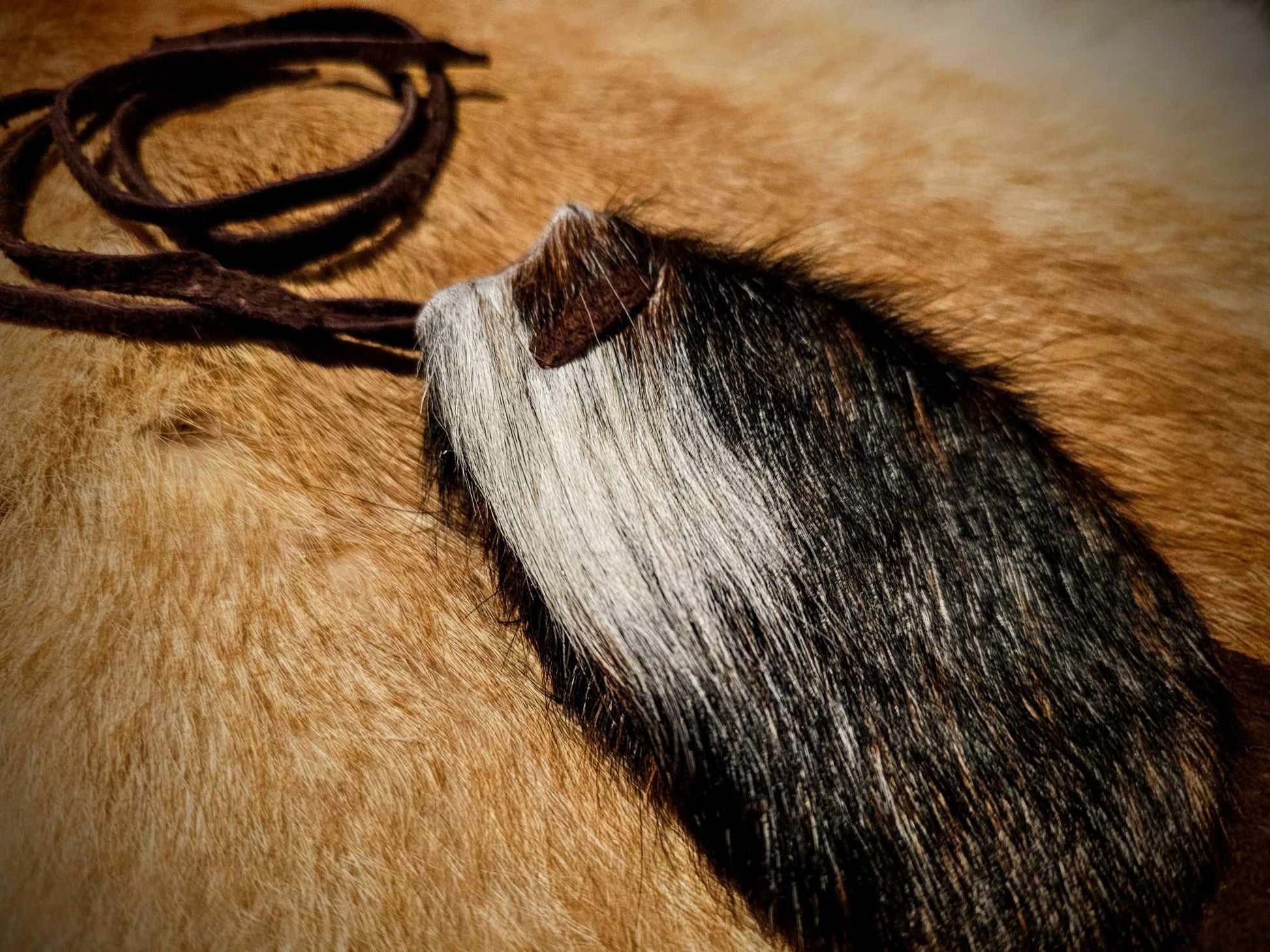 Drawstring wearable medicine bag, handmade from brindle cowhide. Use as a rune pouch also, or for other important small objects.