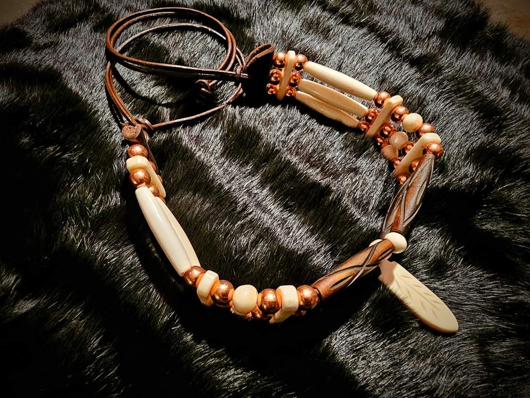 Buffalo Bone, Copper, and Wood Traditional Choker Style Necklace