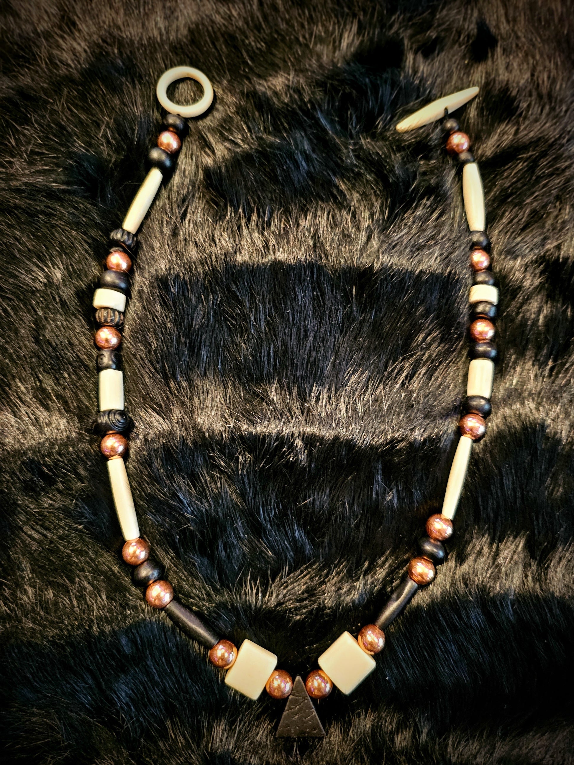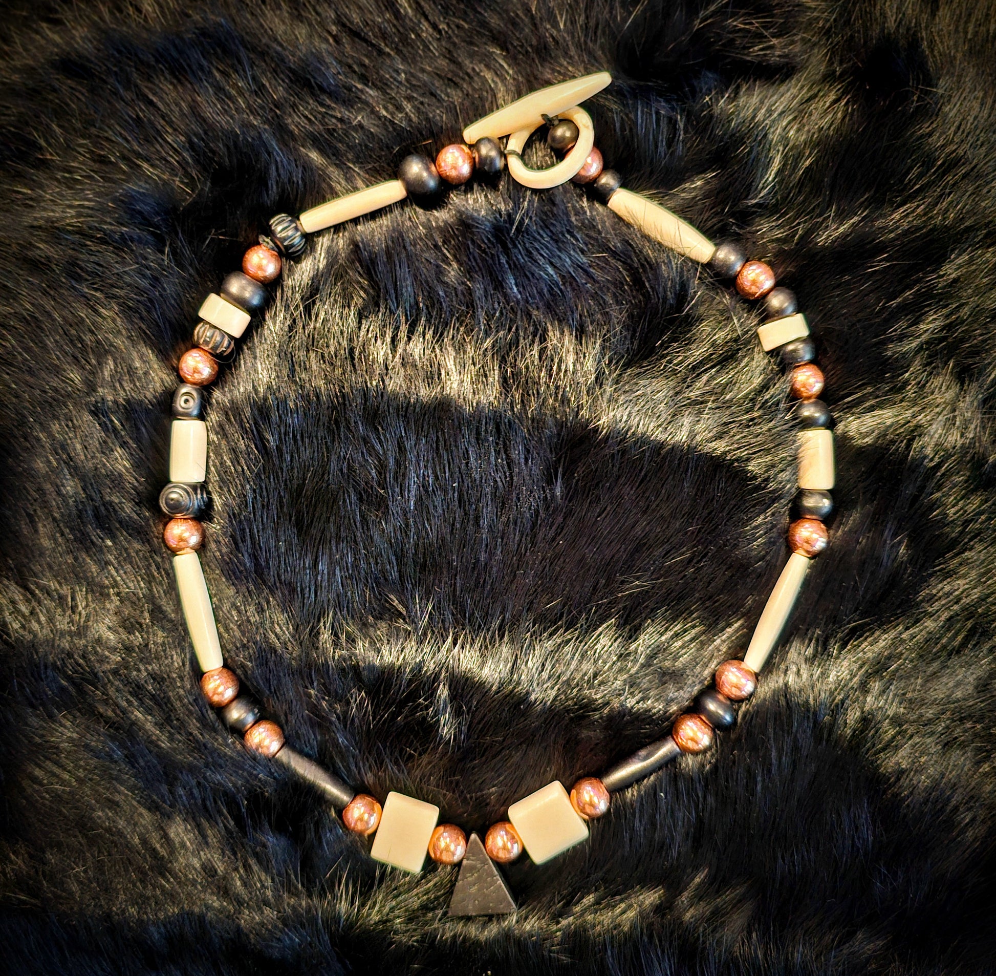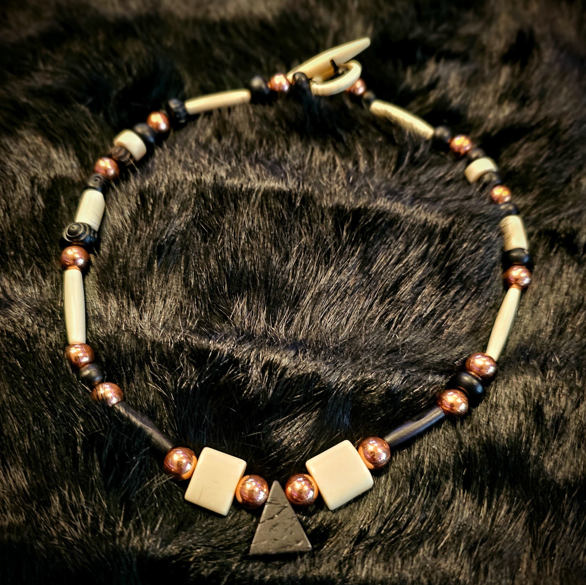 Copper Bead Bone Toggle Necklace Black Bone Triangle Pendant