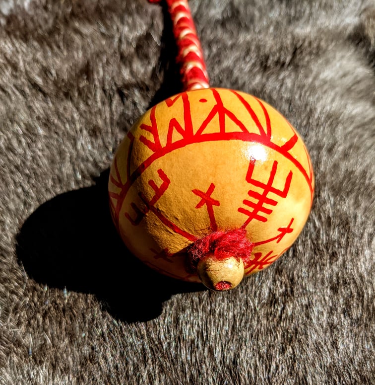 Discovery Meditation Shaman Rattle Runic Hand Painted Gourd Rattle Sinew Wrapping