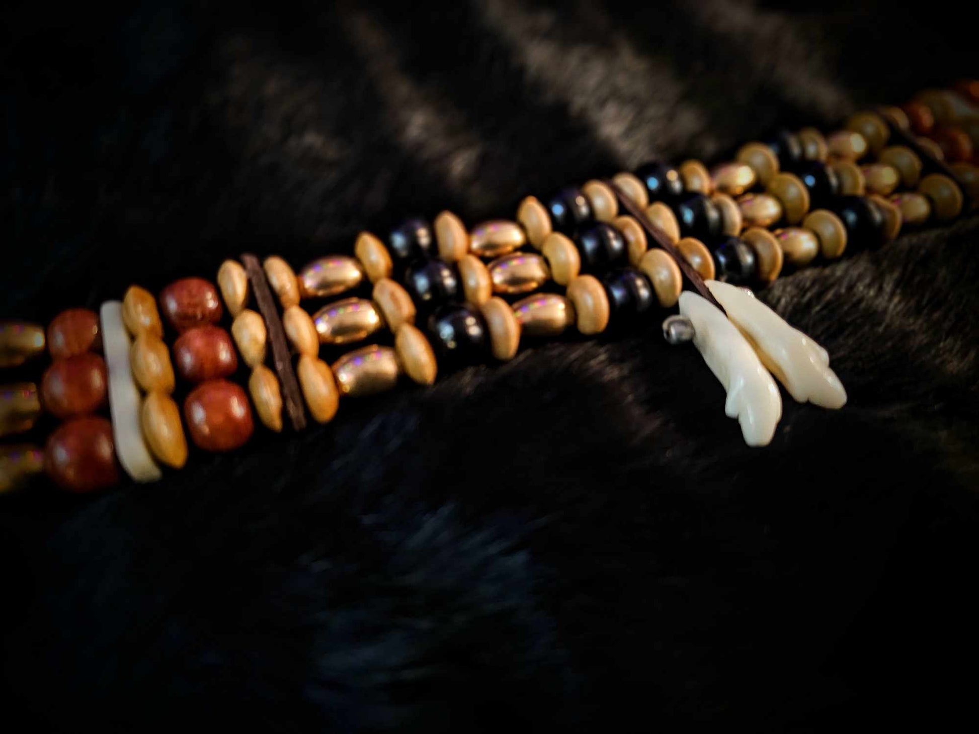 Double Wolf Tooth Beaded Brass, Bone, and Horn Choker Necklace