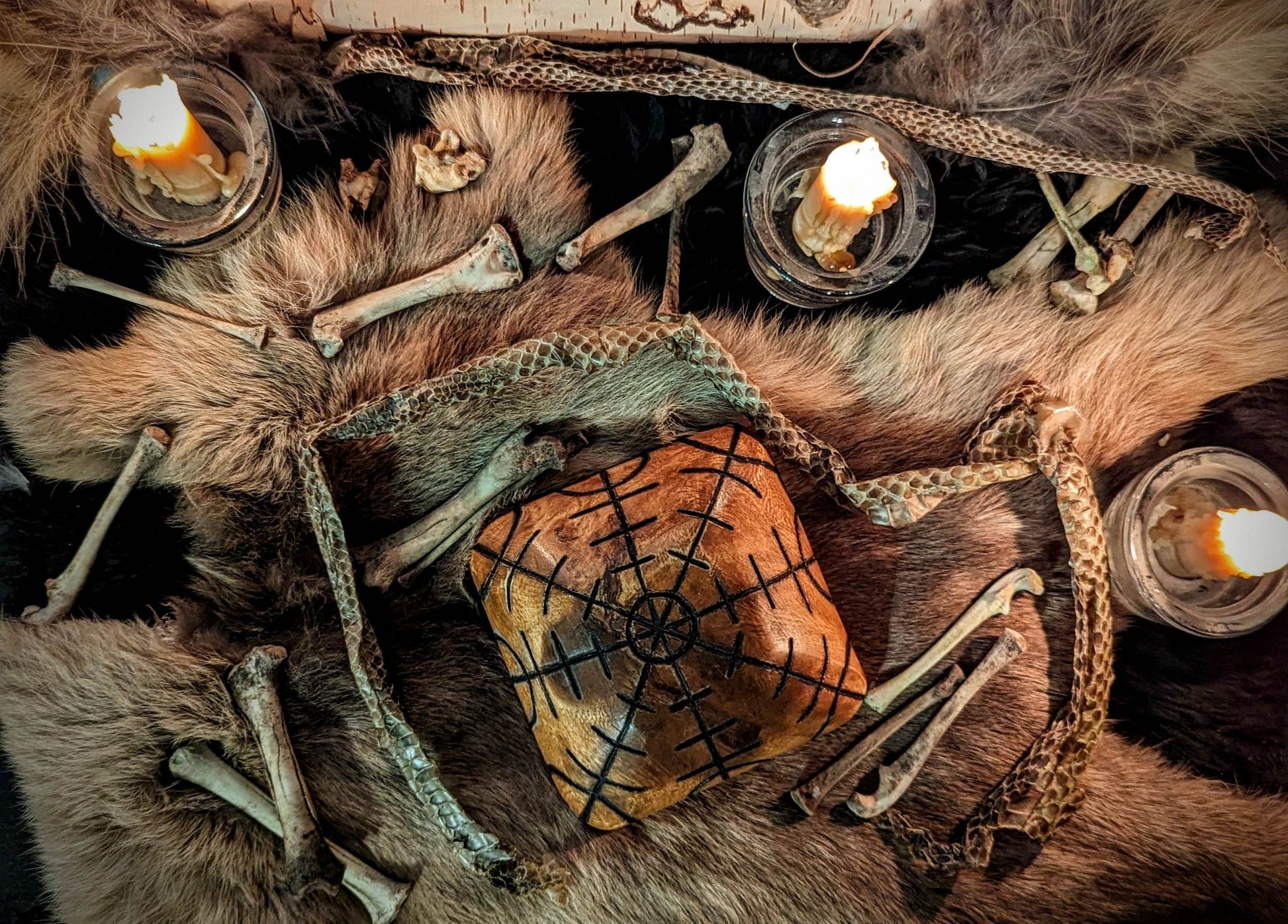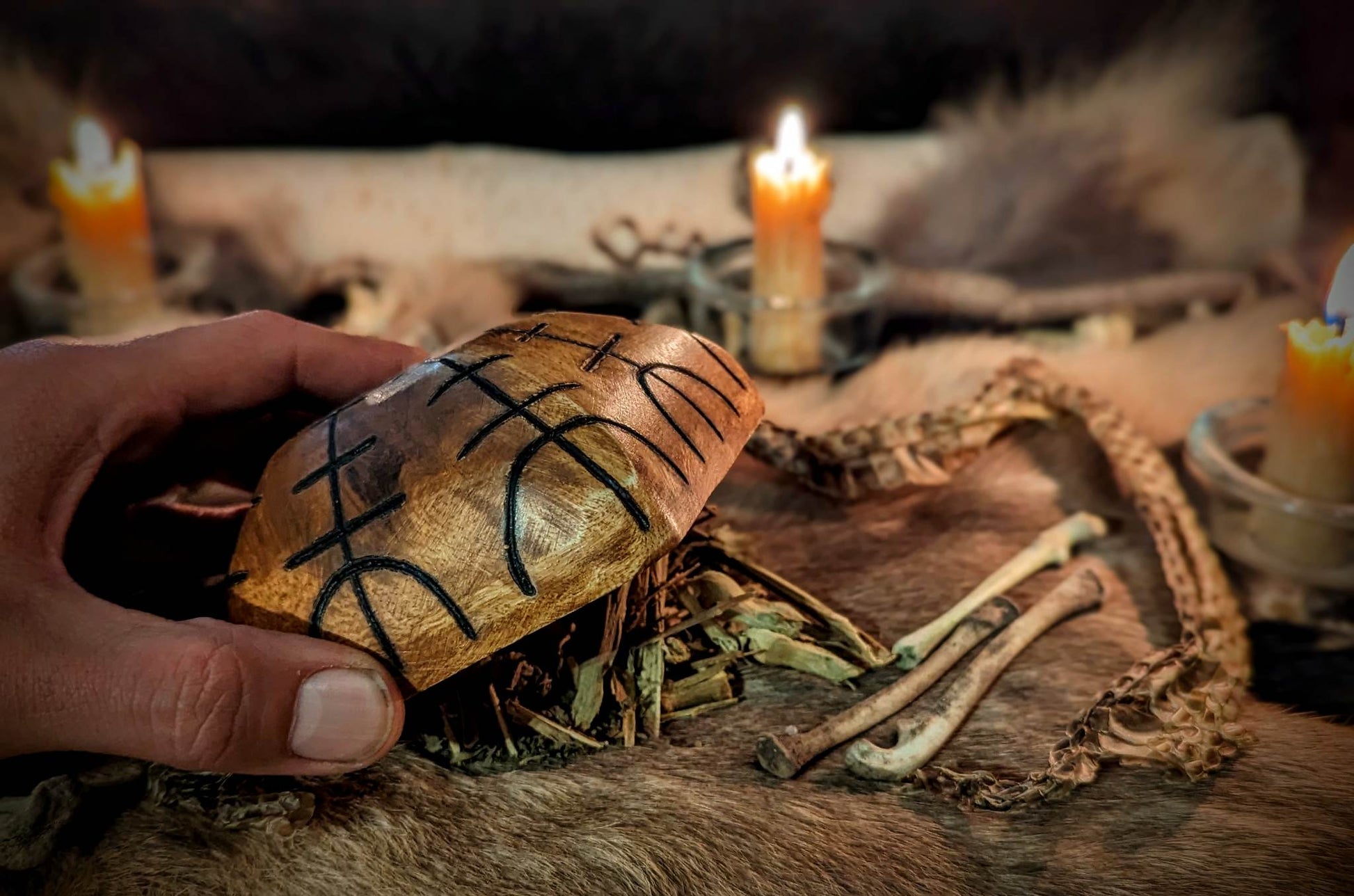 4 inch carved wood bowl with hand burned Elder Futhark design. Use to hold small objects, as an altar fixture, or as a portable blot bowl. Food safe. Holds approximately four fluid ounces.