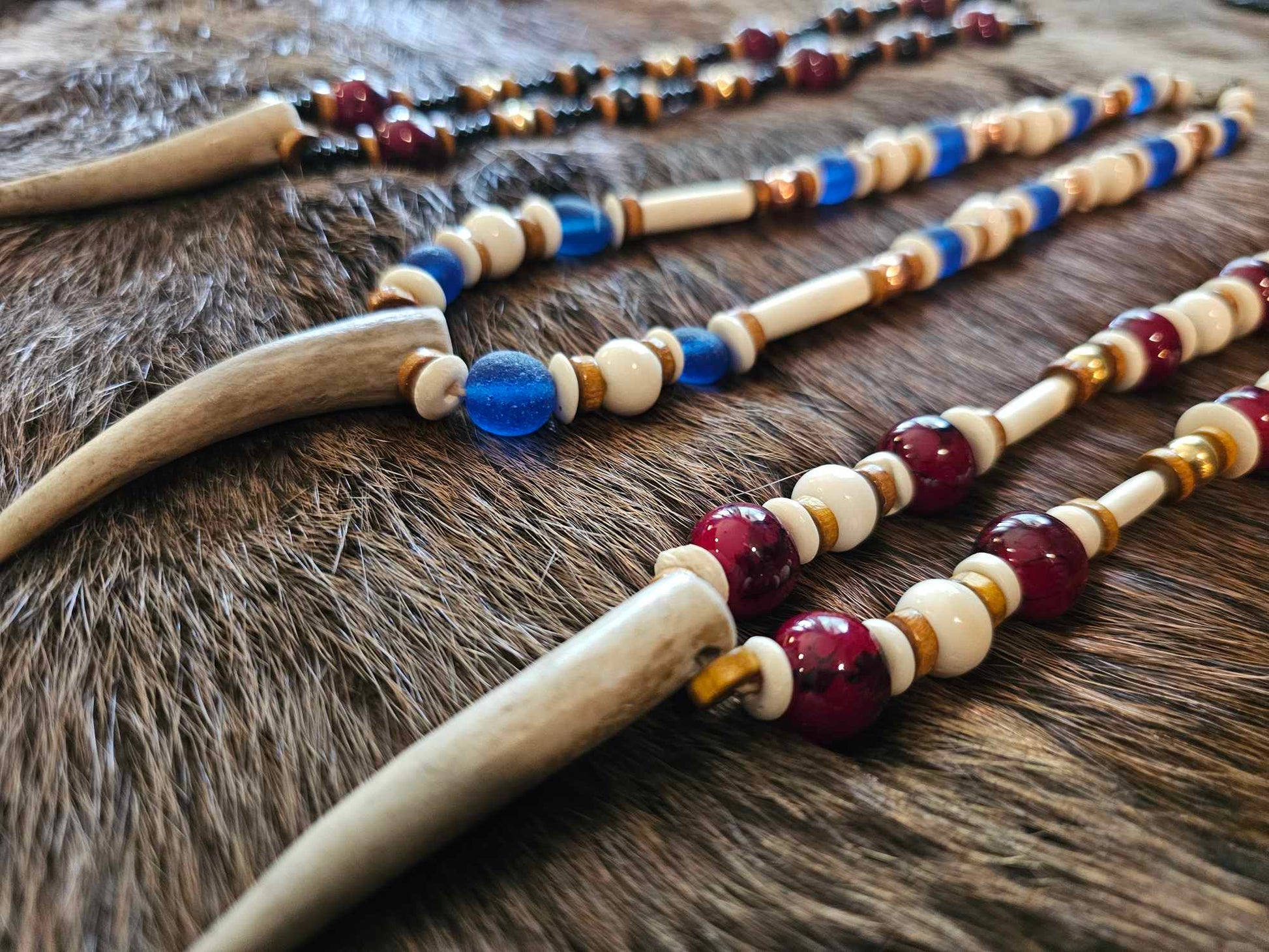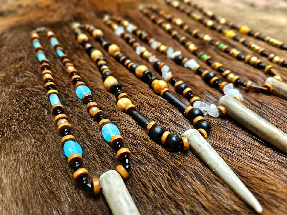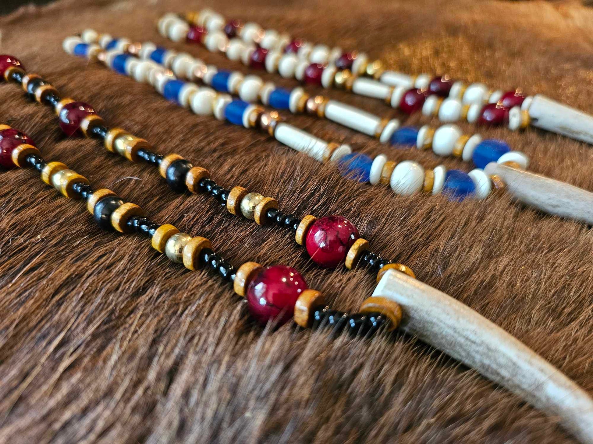 Elk Antler Pendants | Wood, Glass, Brass, Copper, Bison Bone & Horn, White Quartz Beads