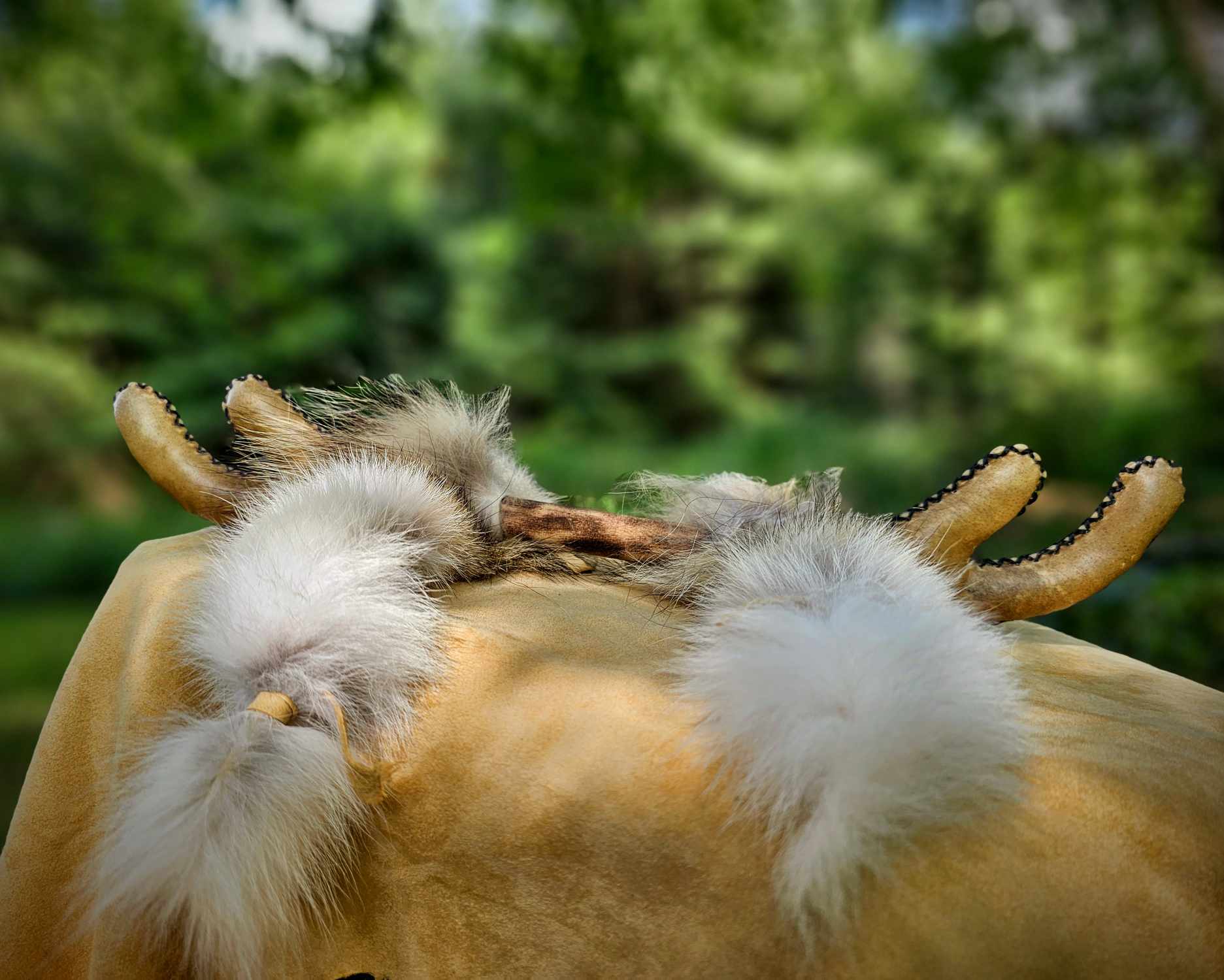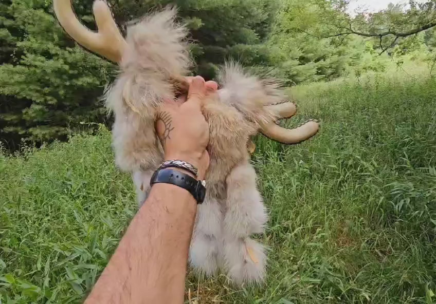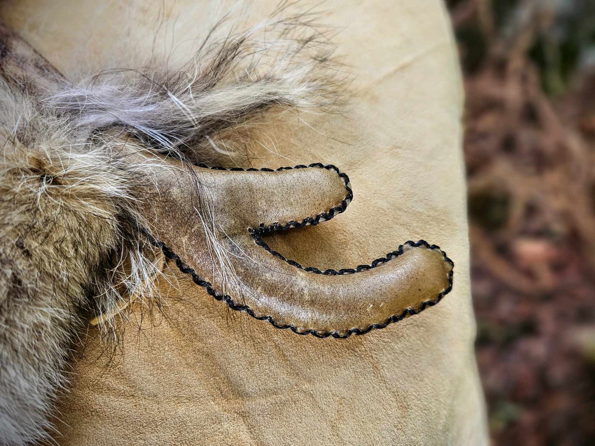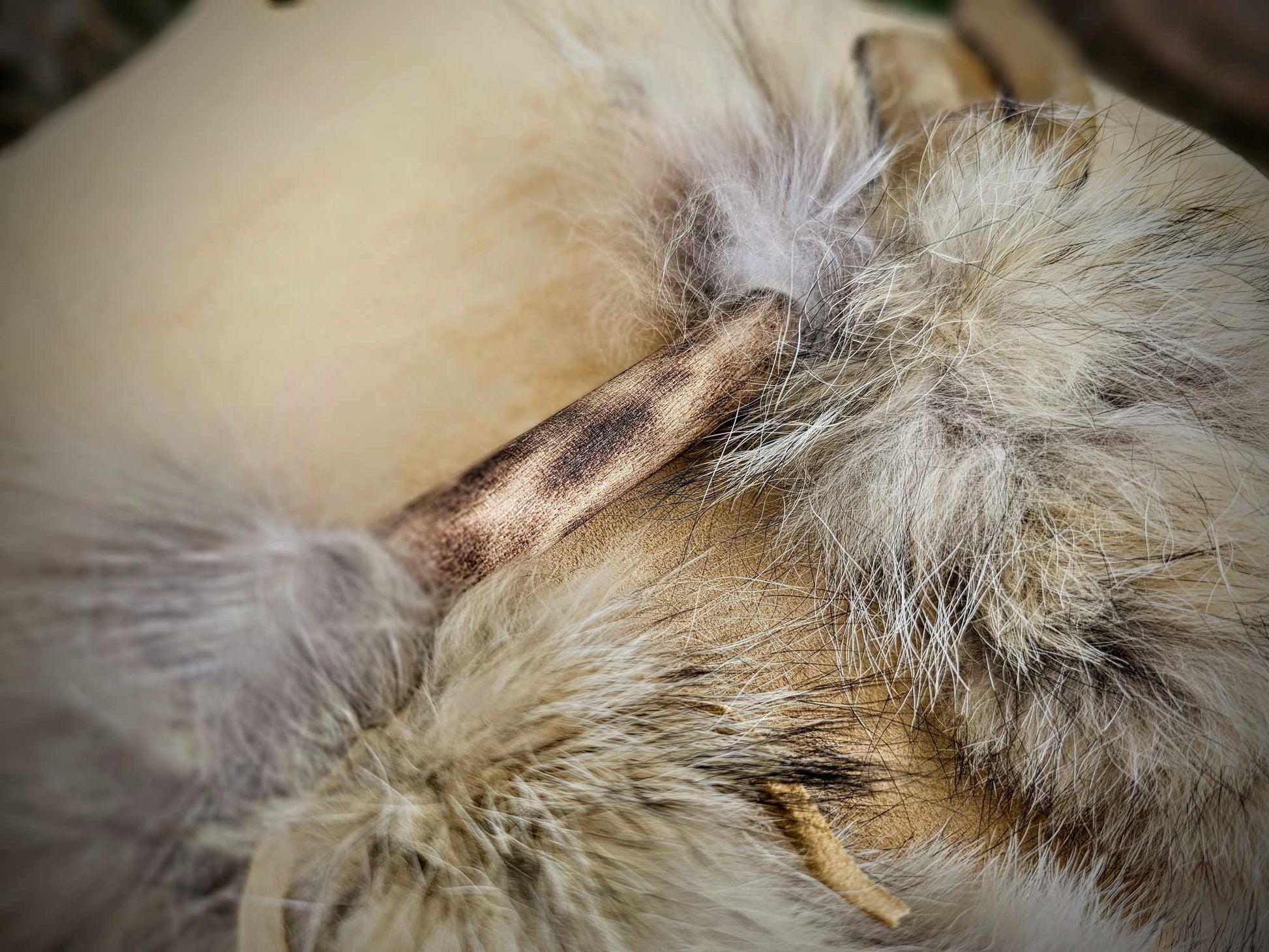 Elk Hide Antler Rattle With Coyote Fur