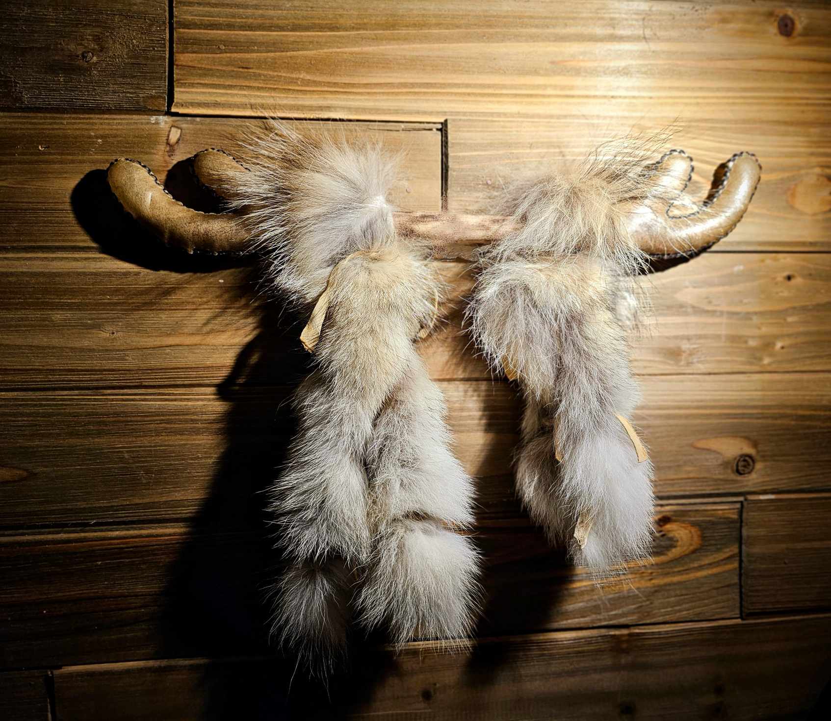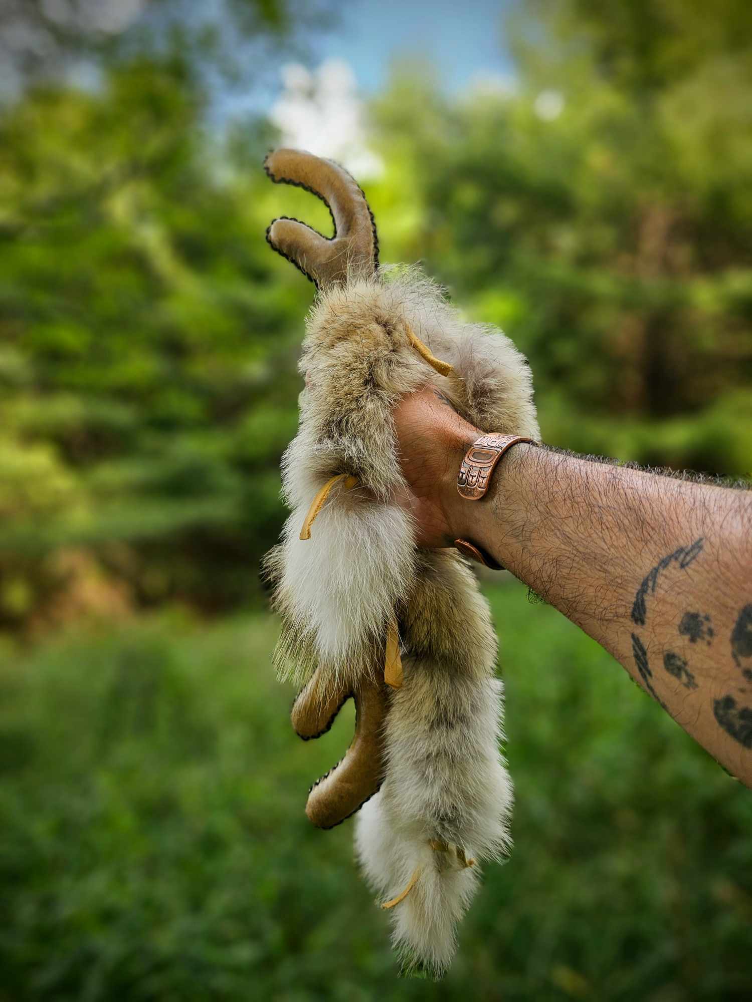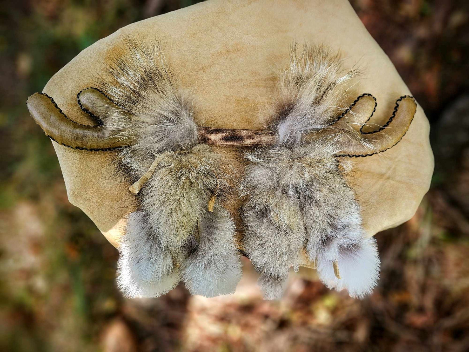 Elk Hide Antler Rattle With Coyote Fur