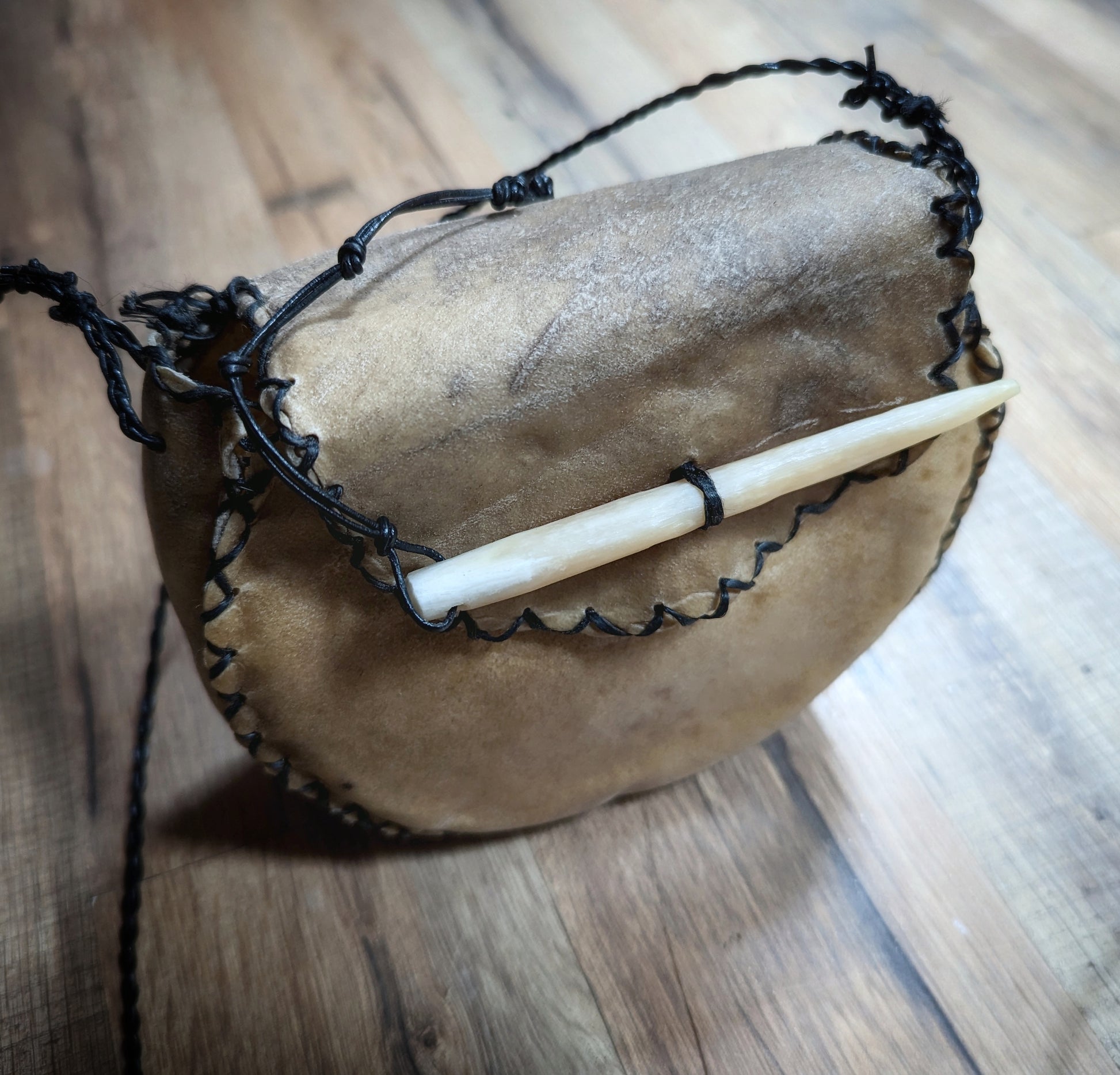 Elk Hide Purse With Elk Bone Closure and Braided Leather Cord