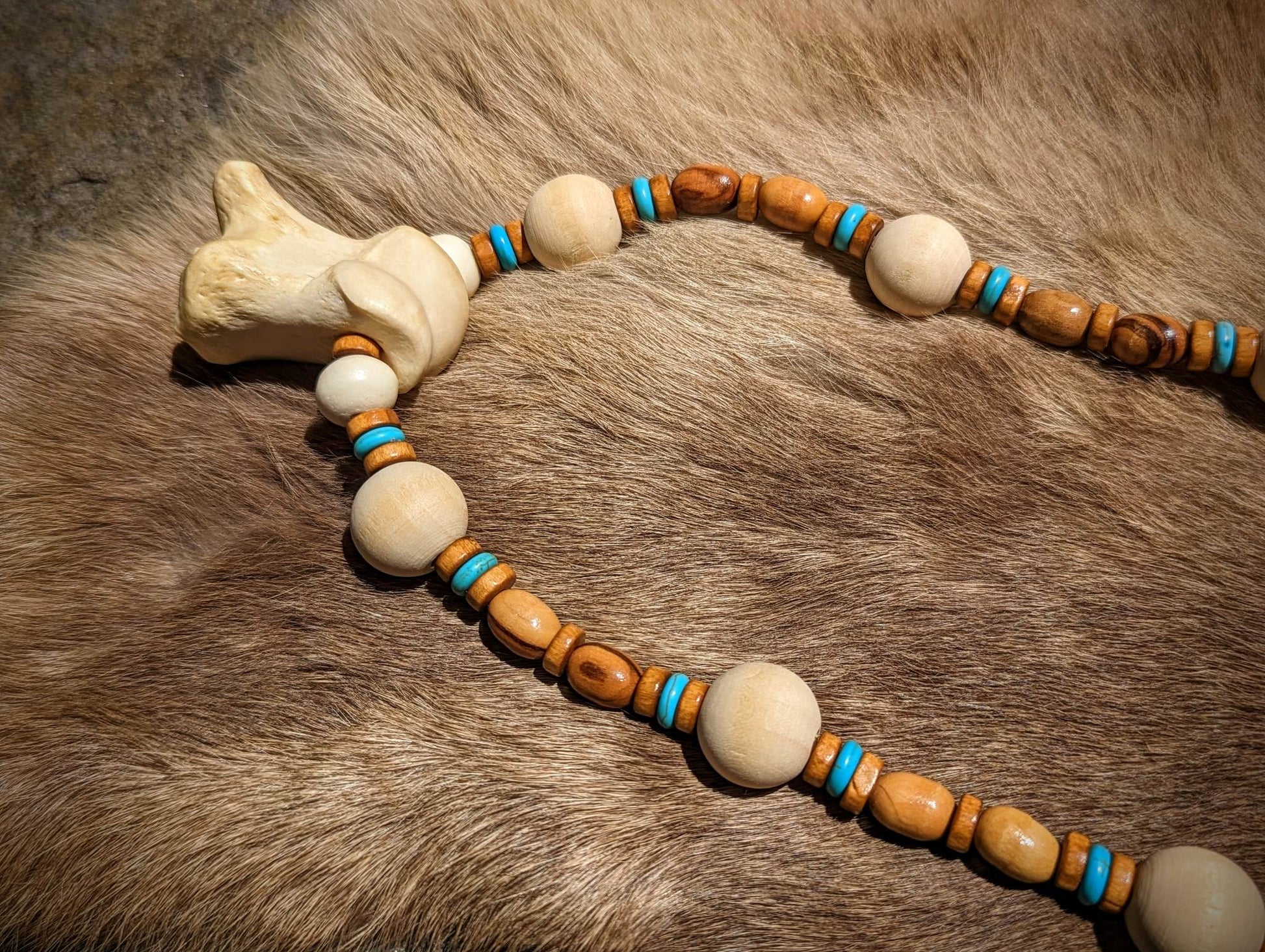 Elk Knuckle Bone, Turquoise, and Olive Wood Necklace