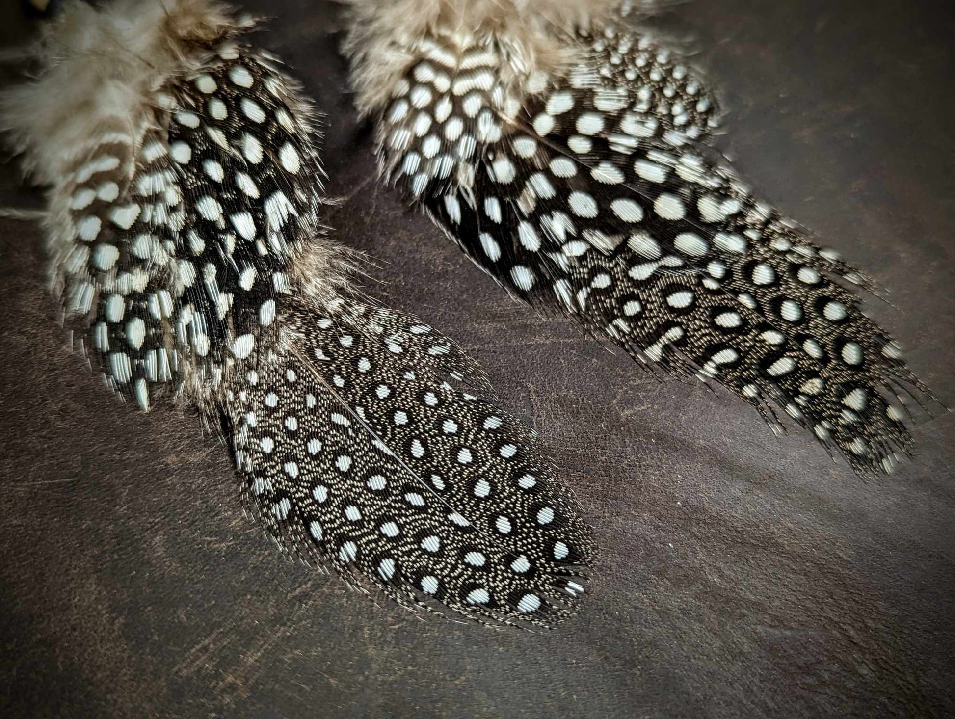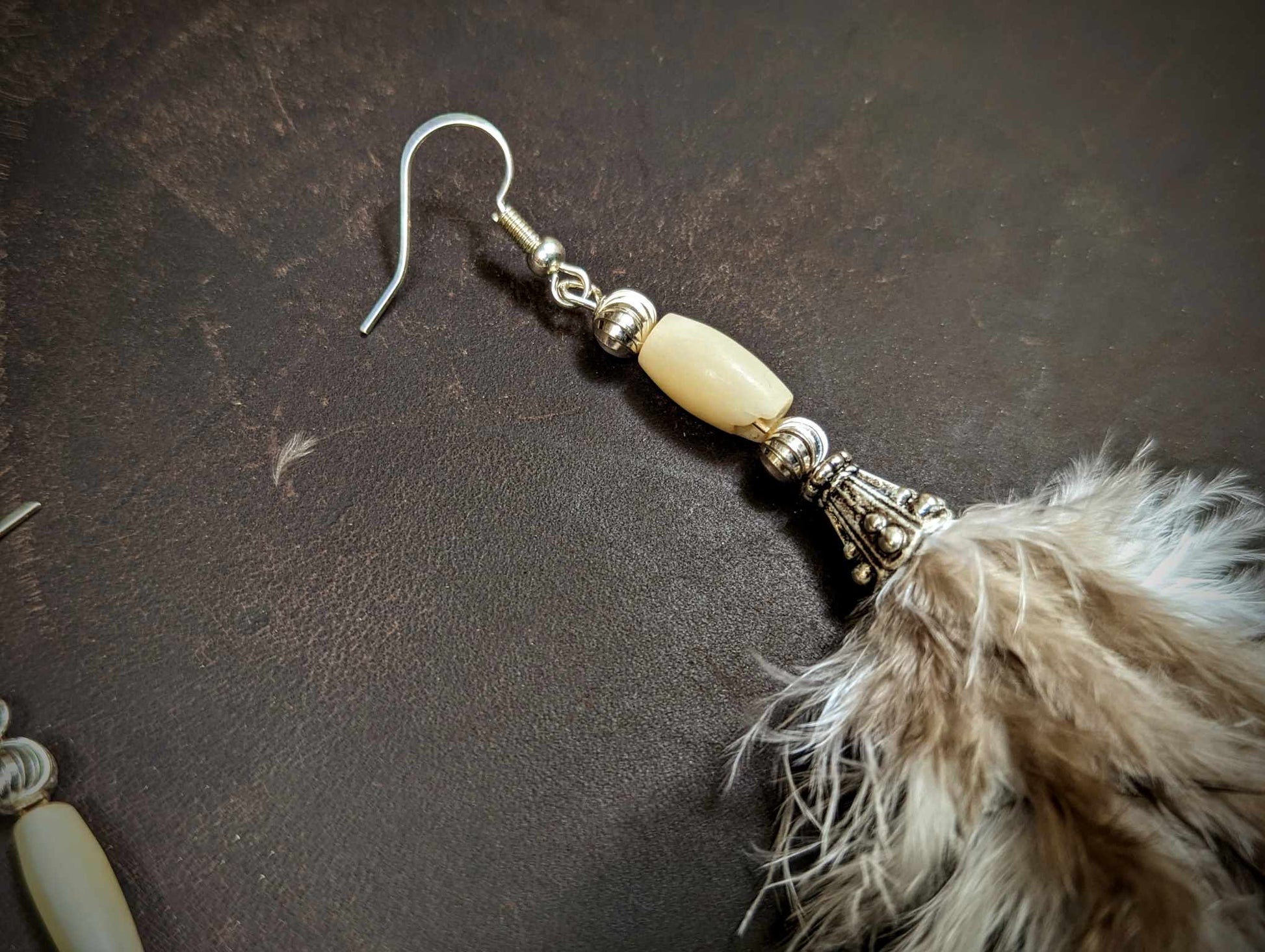 Guinea Feather Sterling Silver Lava And Bison Bone Bead Earrings
