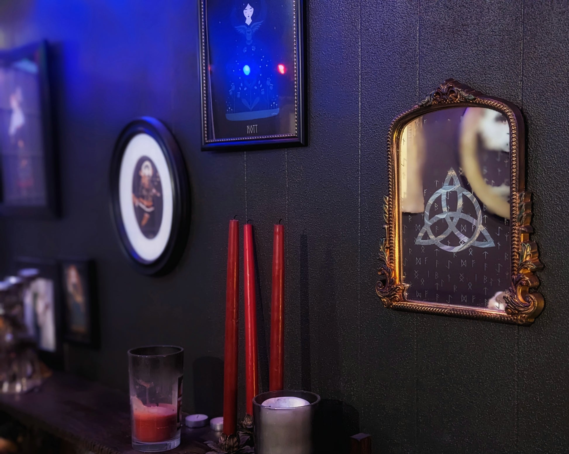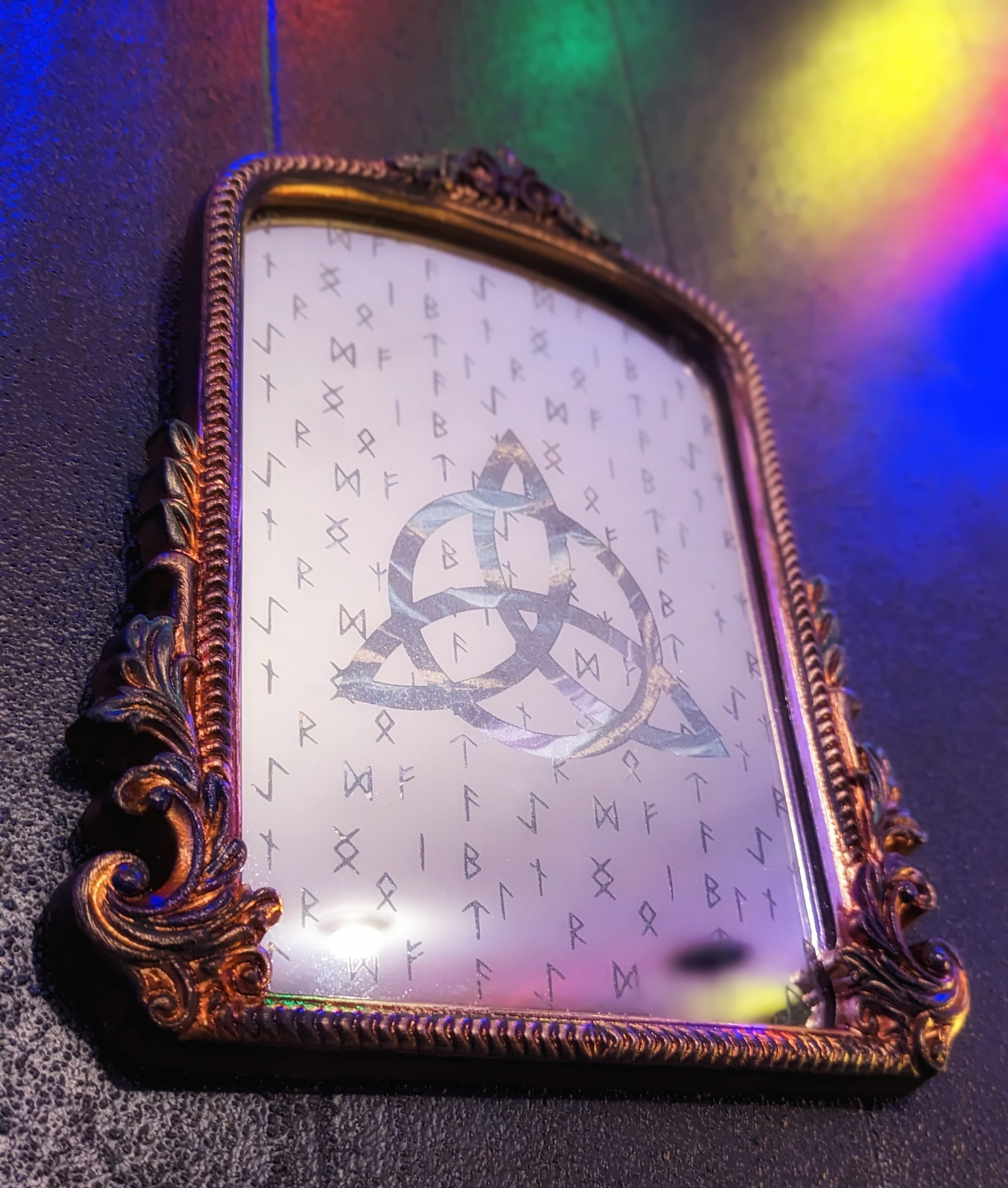 Hand Painted Engraved Rune Triskelion Altar Mirror Decor