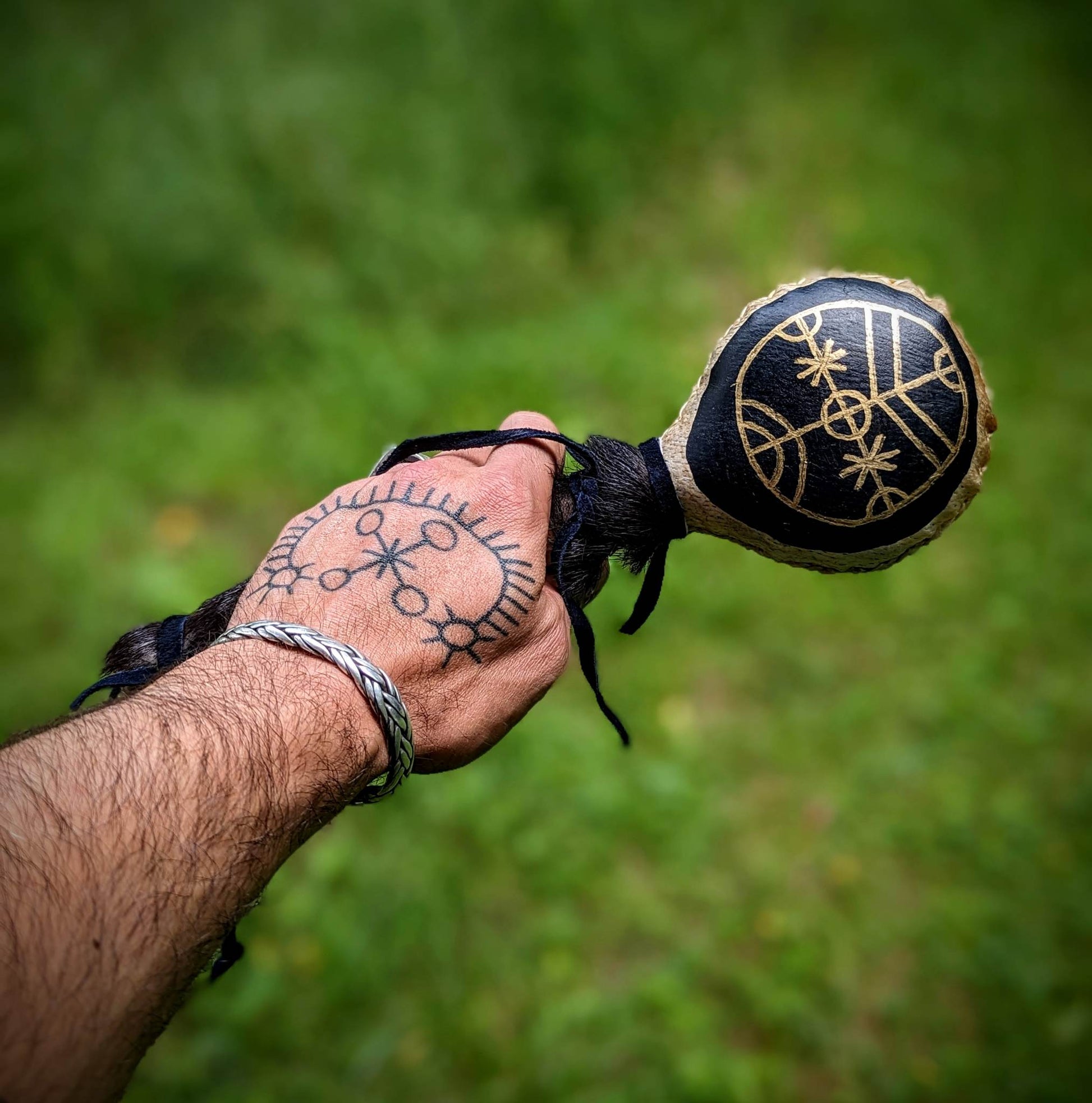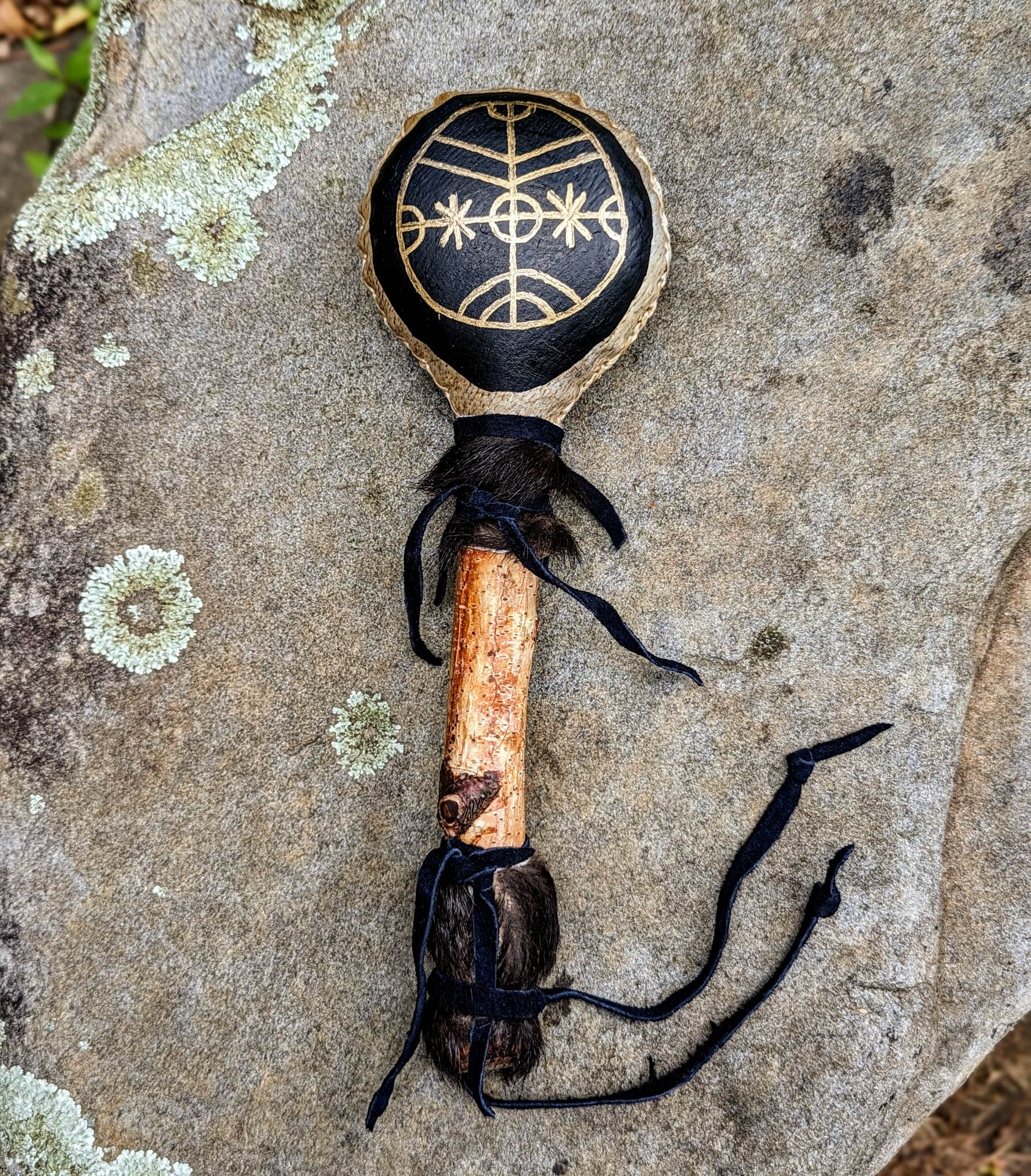 Icelandic Magic Stave Rotakross | Bear Hide Shaman Rattle