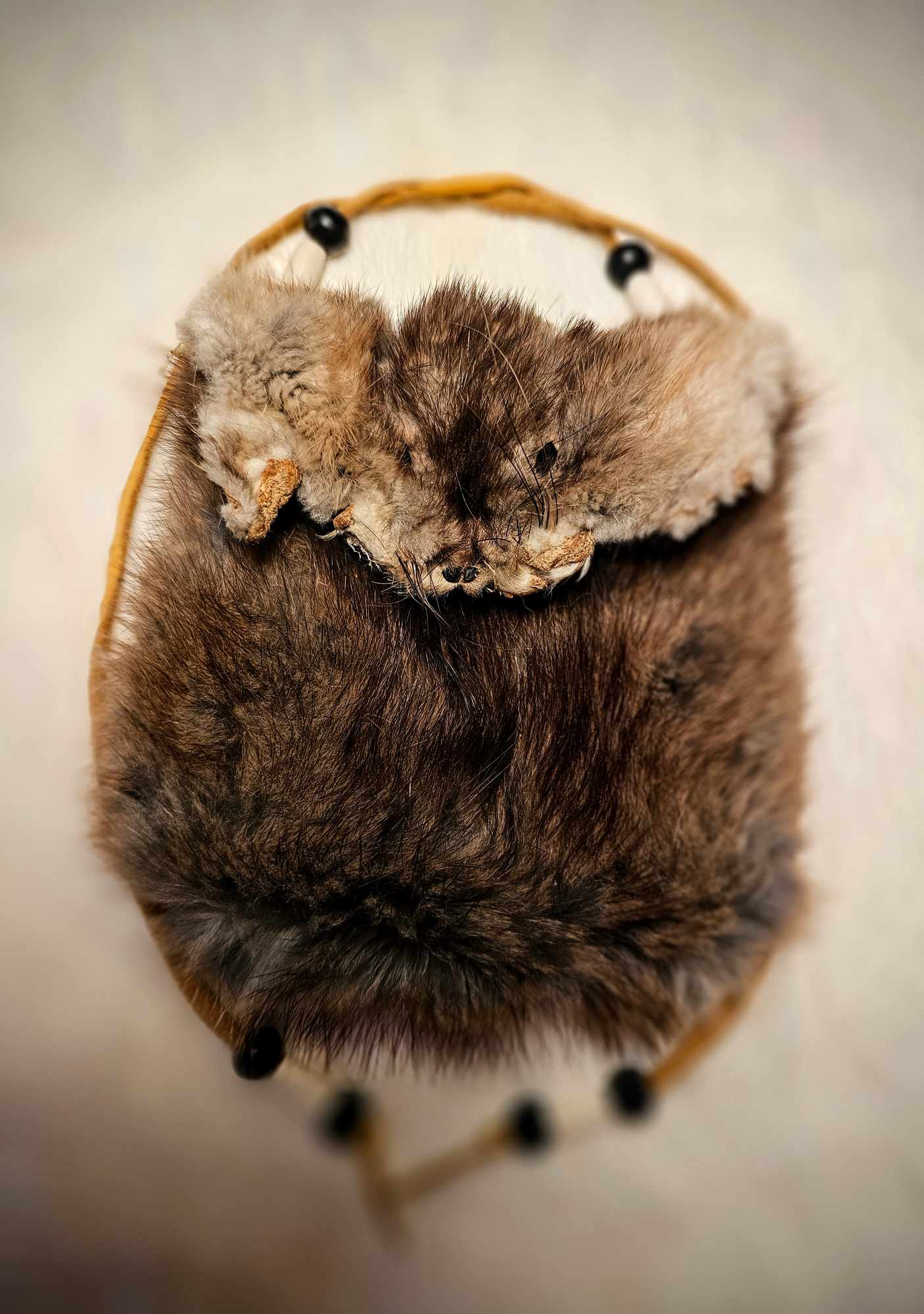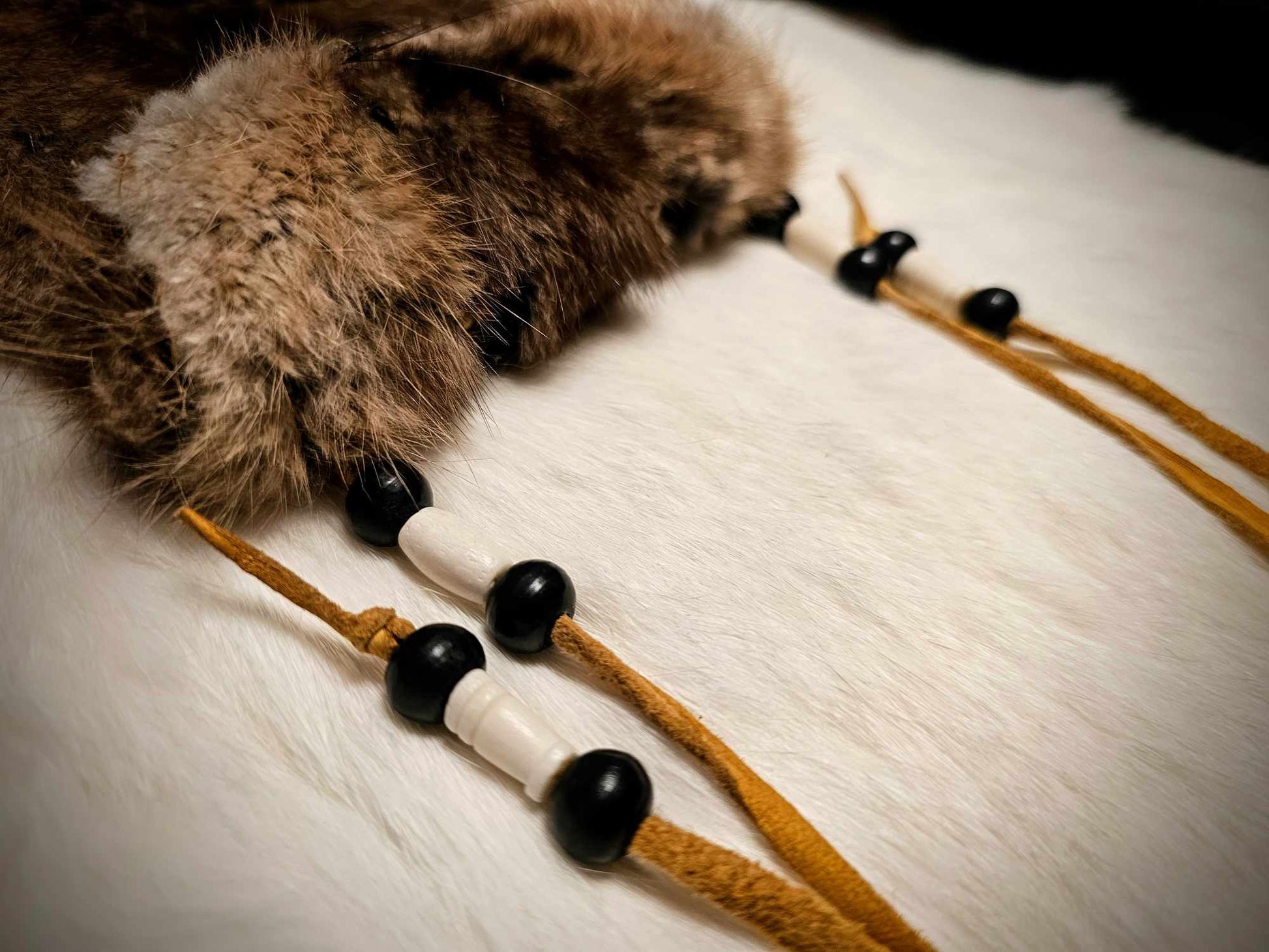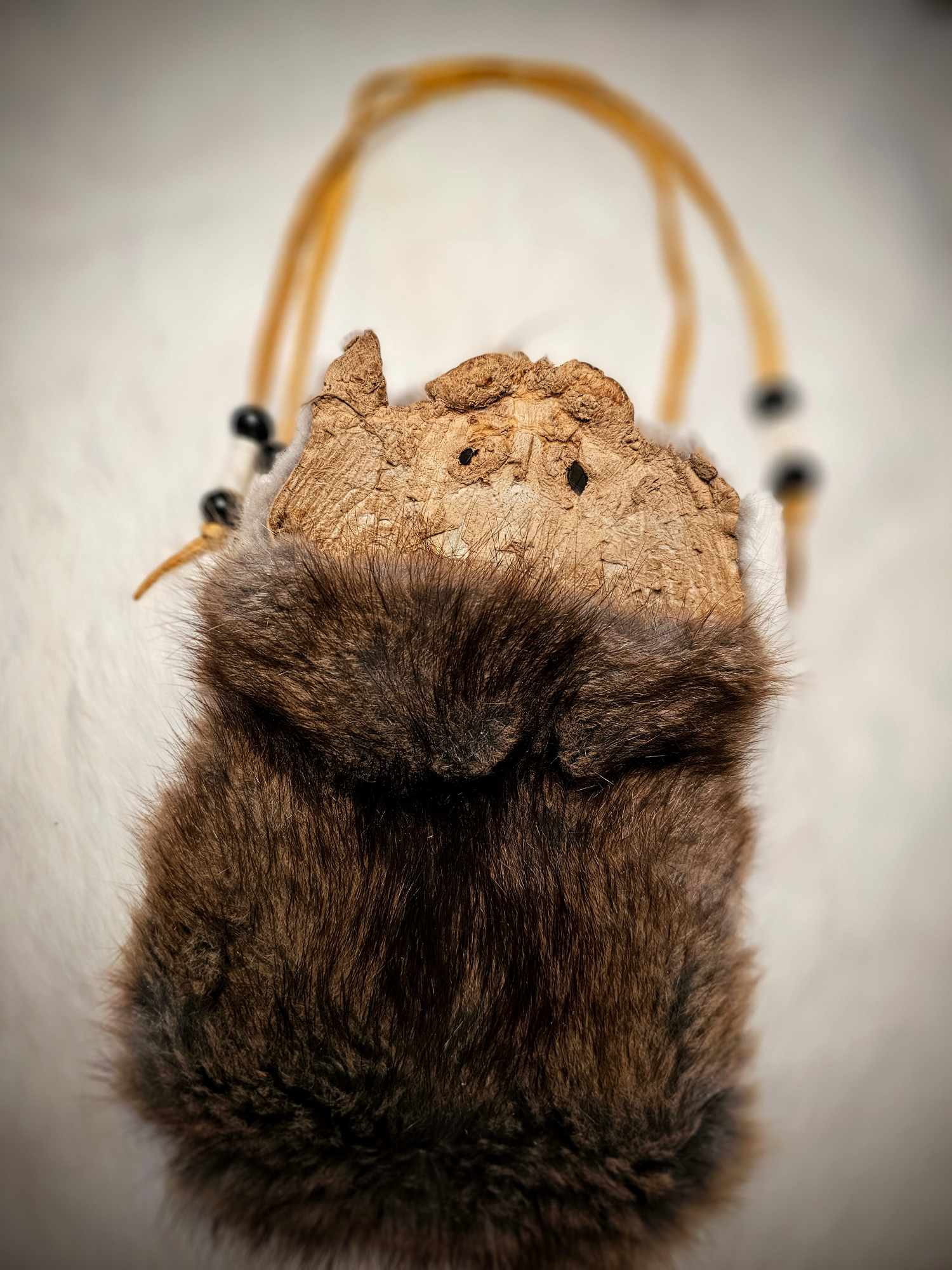 Muskrat Hide Pouch With Buckskin Ties & Buffalo Bone and Horn Beads
