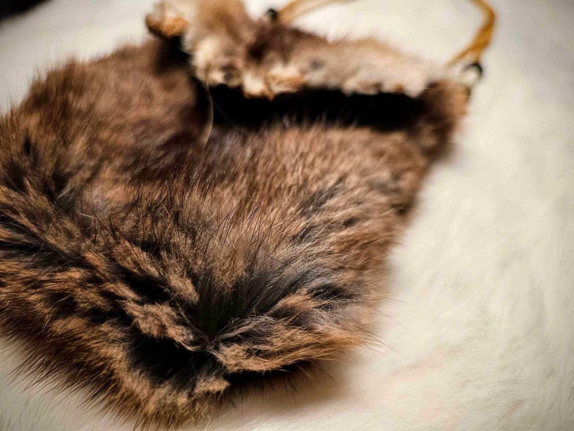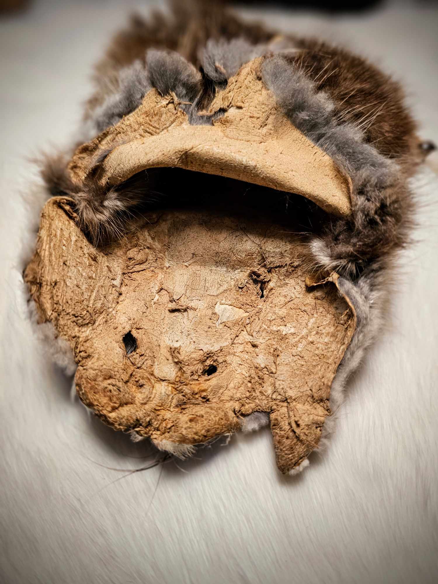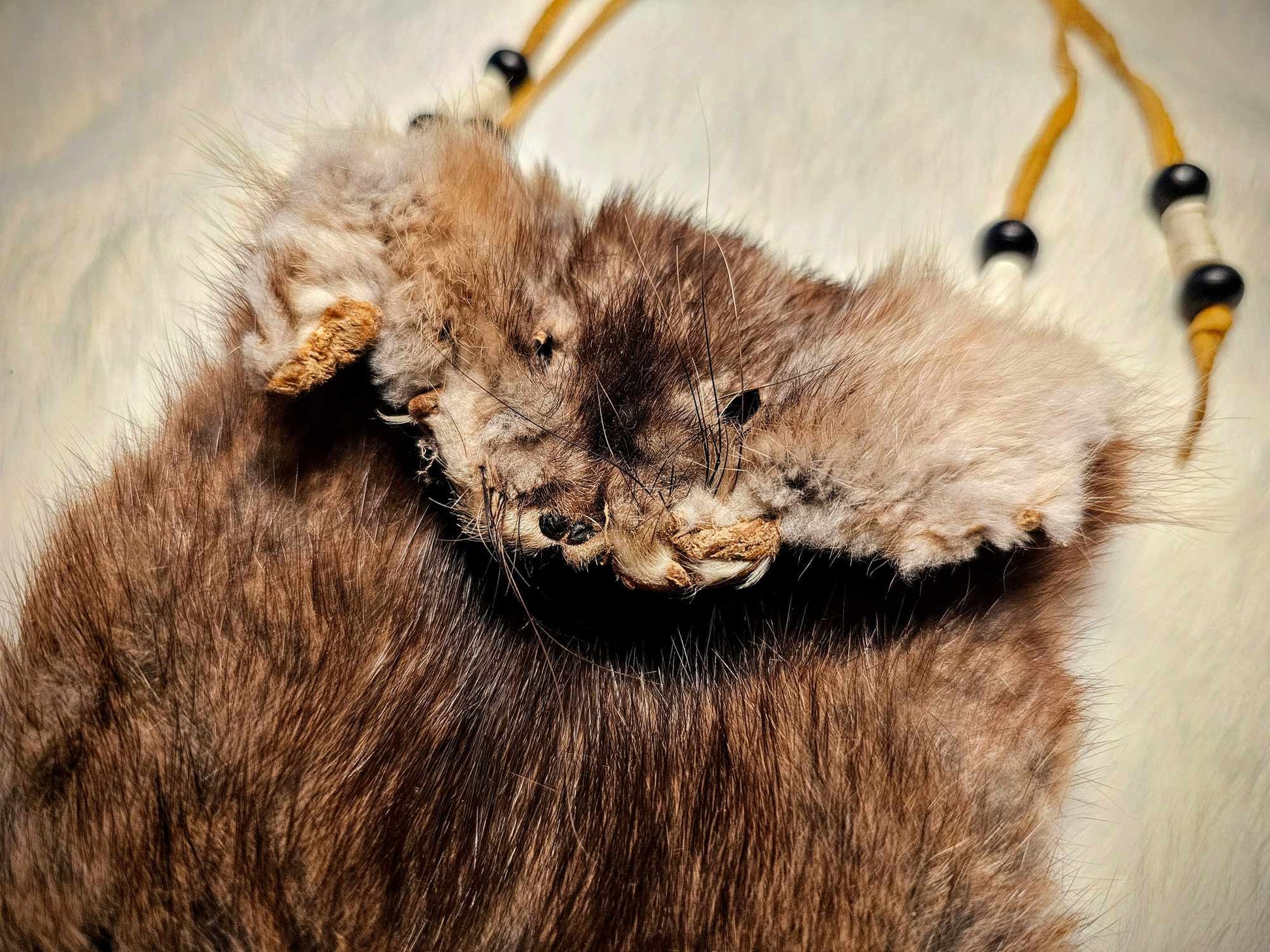 Muskrat Hide Pouch With Buckskin Ties & Buffalo Bone and Horn Beads