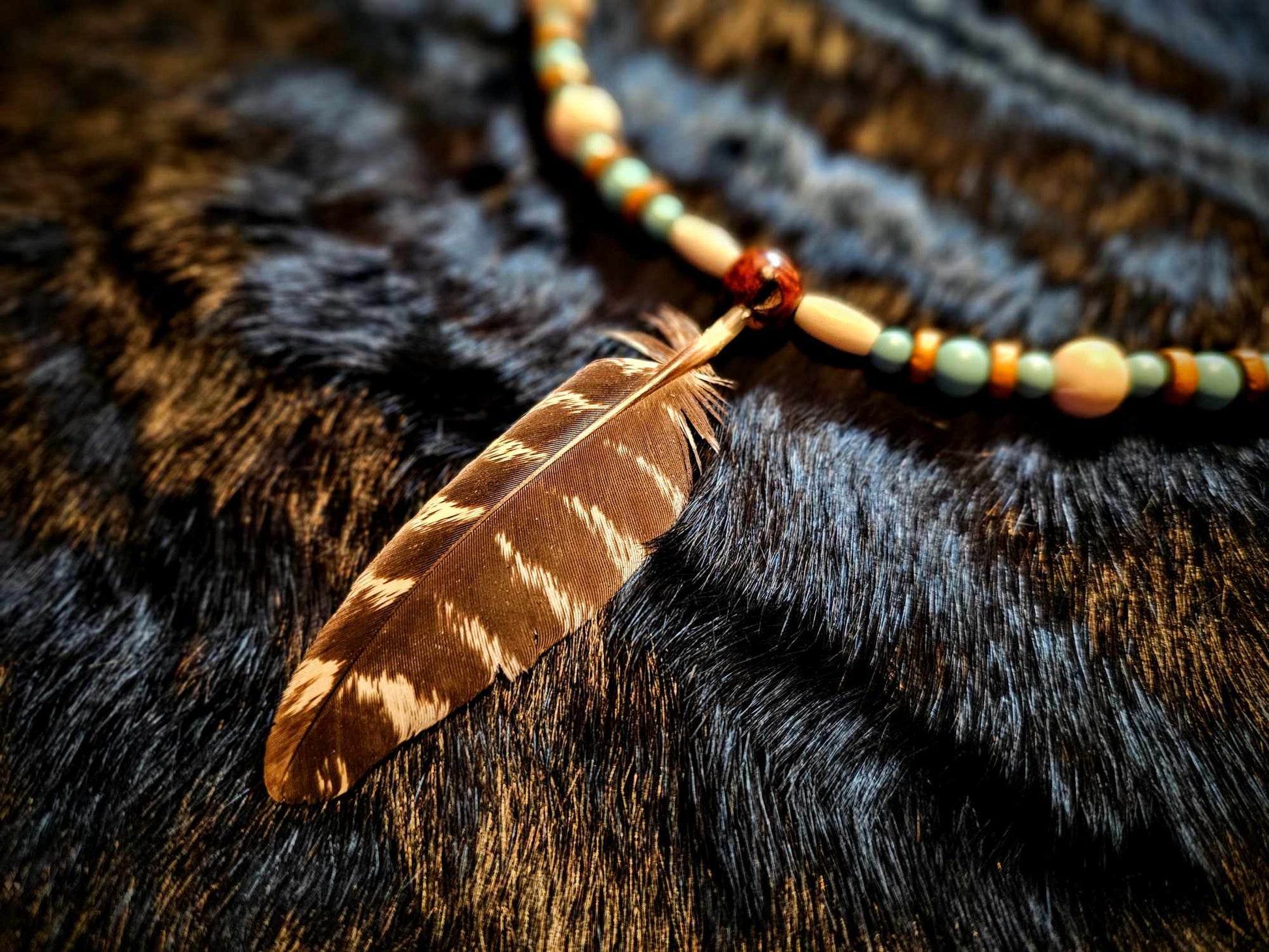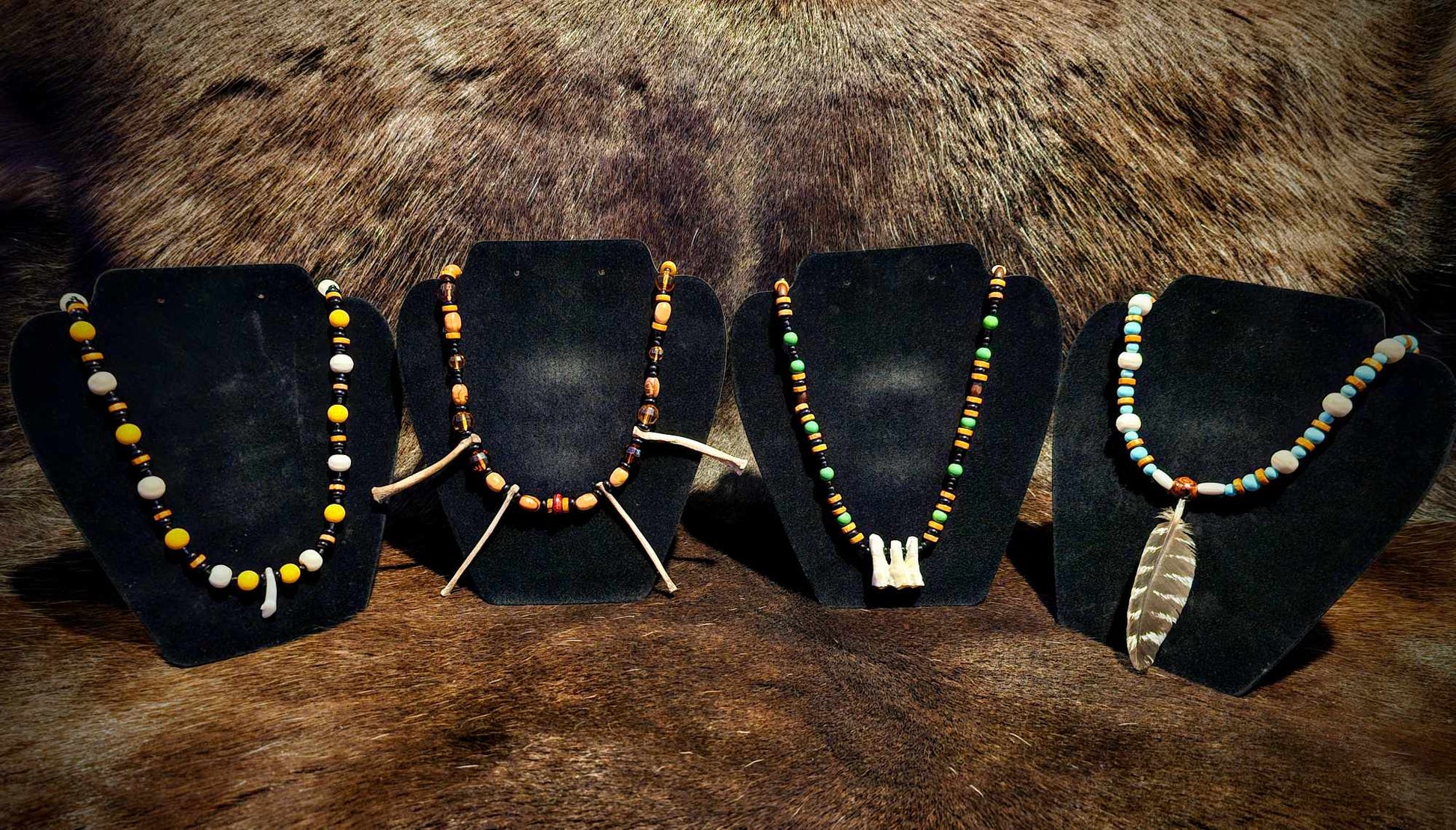 Nature Coyote Elk Tooth Bone and Feather Necklaces