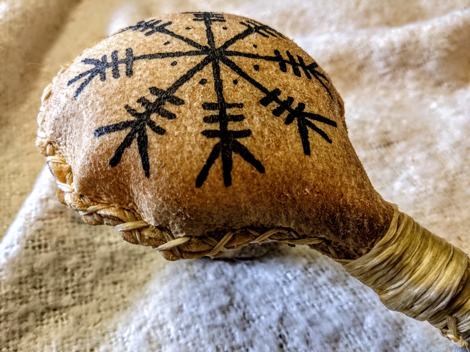 Norse Pagan Shaman Rattle Moose Hide Hand Painted Spirit of Amplified Protection
