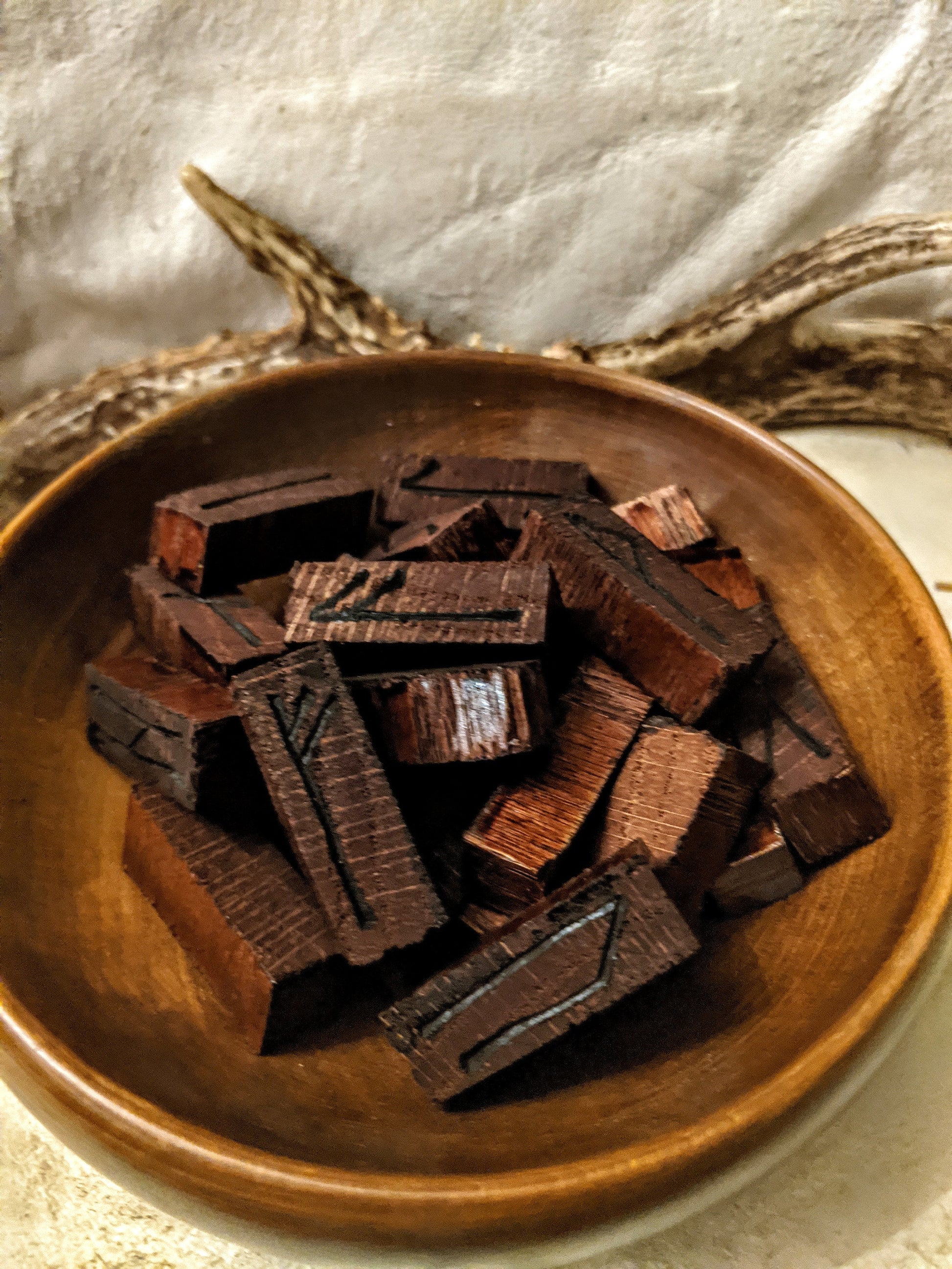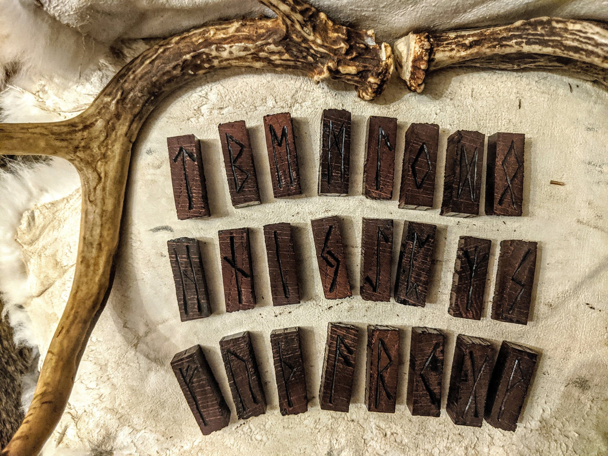 Red Oak Elder Futhark Norse Runes Wood Rune Set