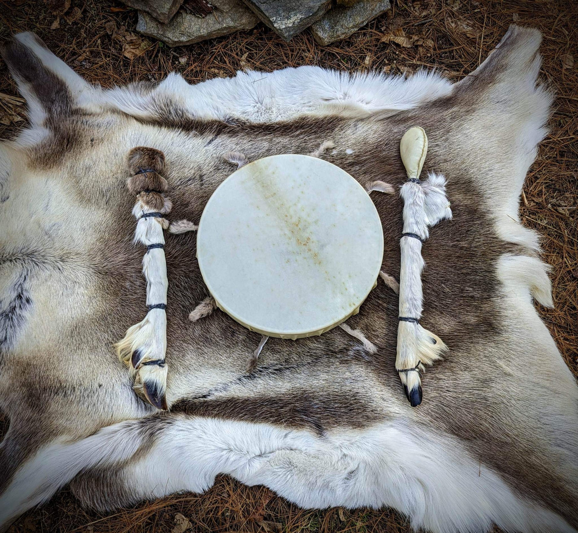 Reindeer Drum With Leg and Hoof Beater And Rattle