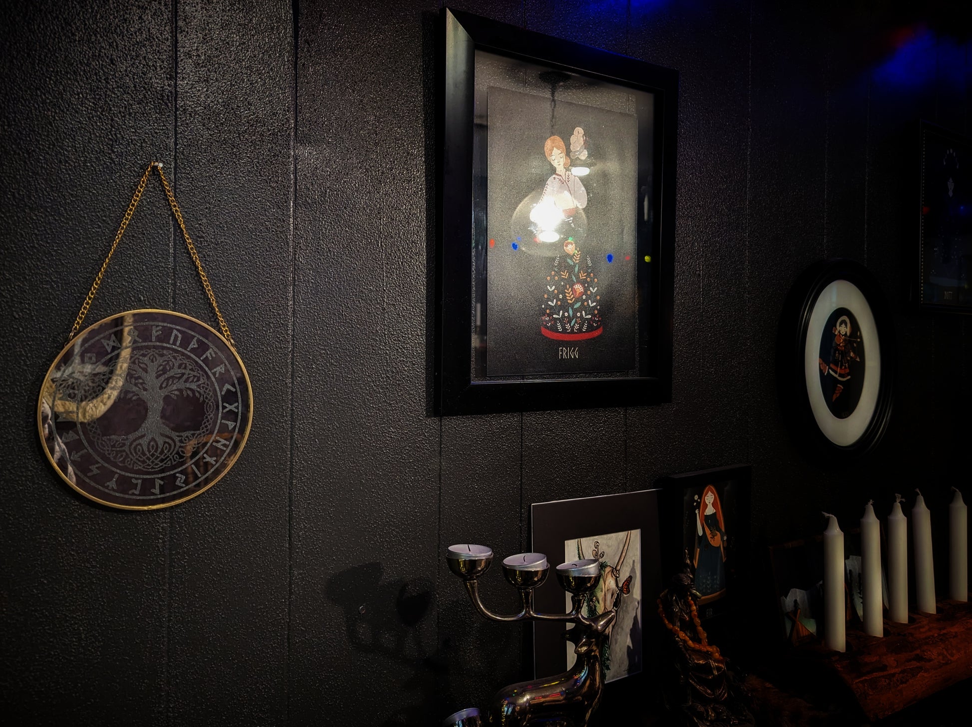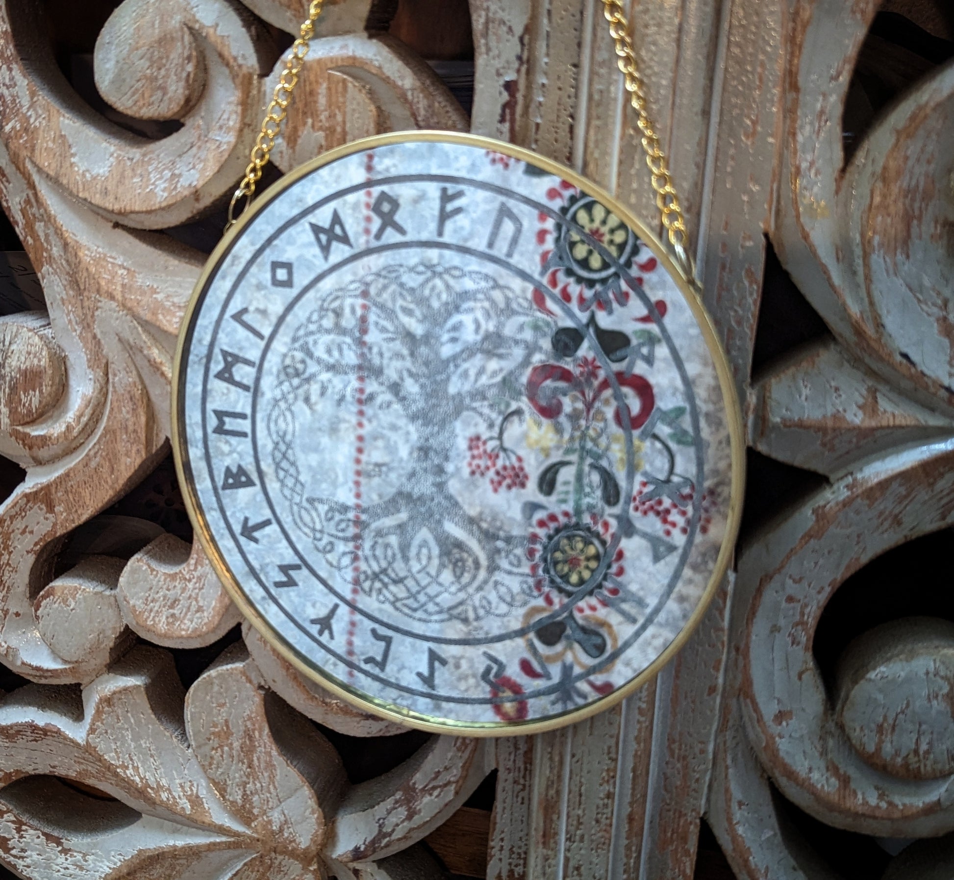 Rune and Yggdrasil Engraved Mirror on Gold Chain