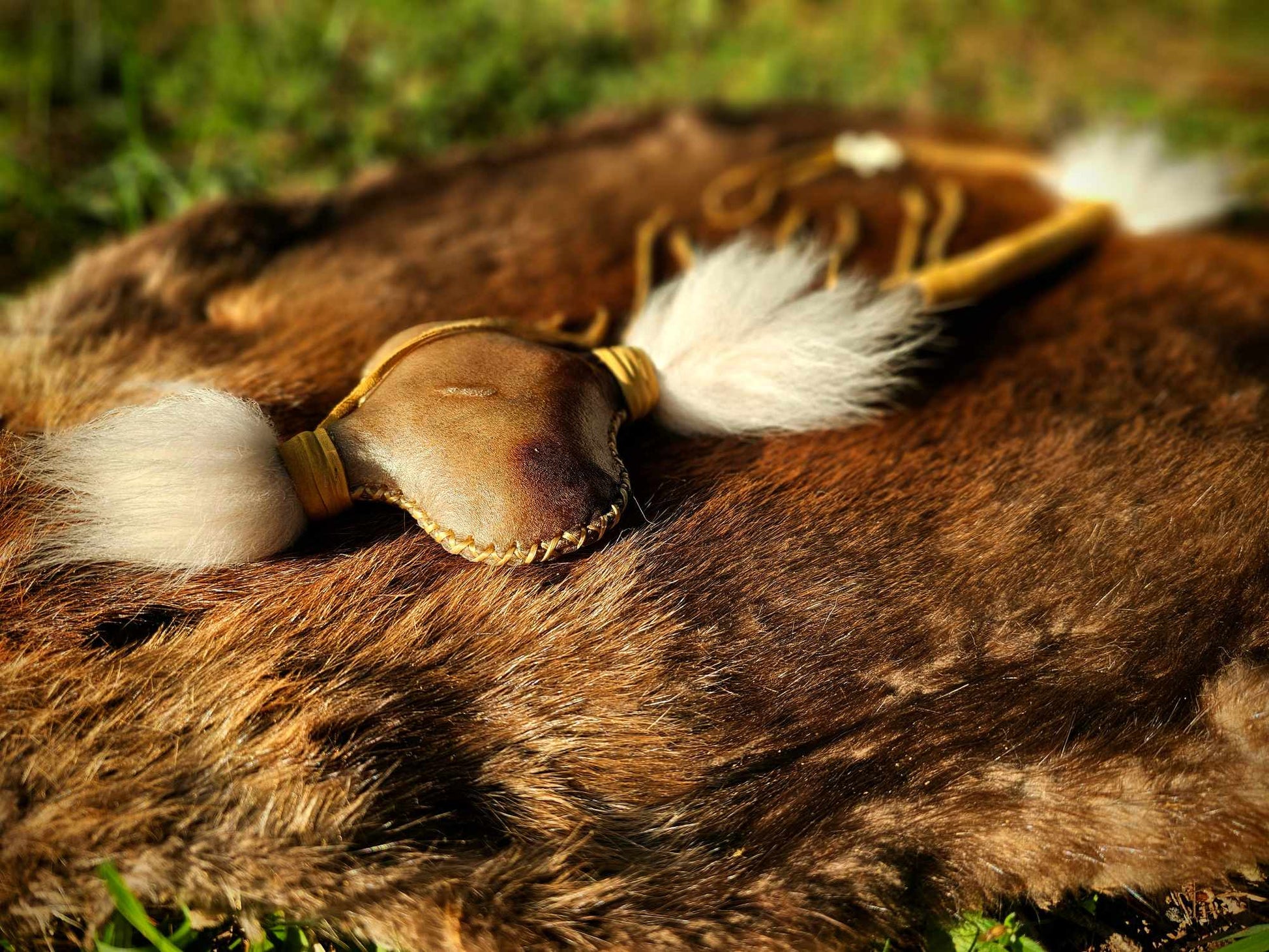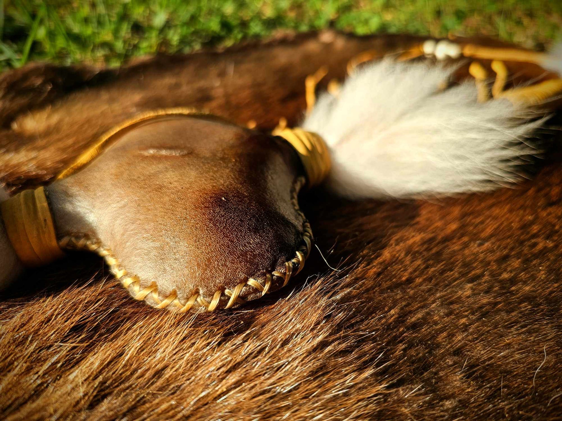 Running Dogs' Hunt Ceremony Rattle | Bison Hide | Copper Beads