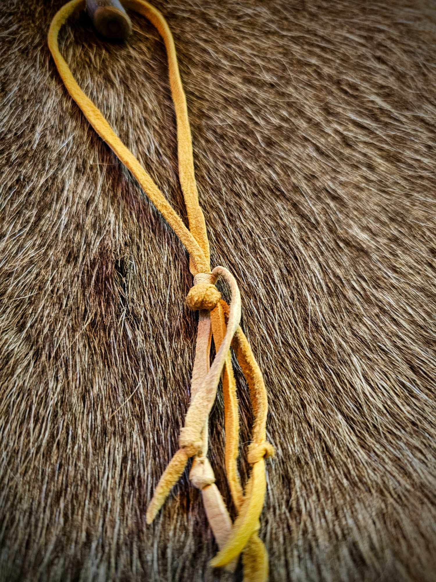 The Horse for its speed and swiftness, the Bear for it's strength, the Elk for its endurance, and the buckskin for grip and sure-footedness. The granite tumbled smooth by mountain streams near my home, and the Ash is a hardwood yet flexible enough for working. The history of brass dates back to around 5,000 BCE but nothing is quite as old as stone so these beads are not only decorative but included as a nod to humankinds progress and constant drive forward.