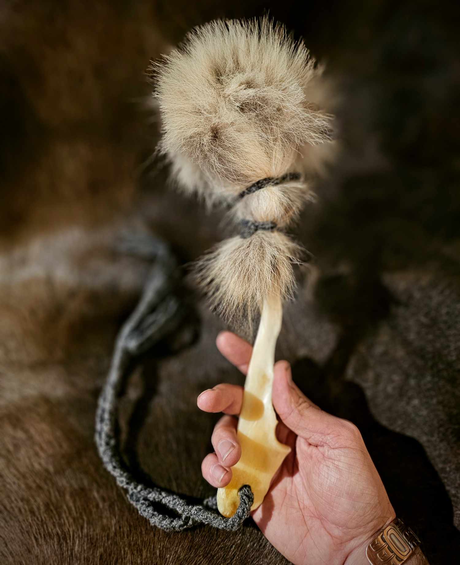 Wolf Fur and Bone Drum Beater Soft Mallet