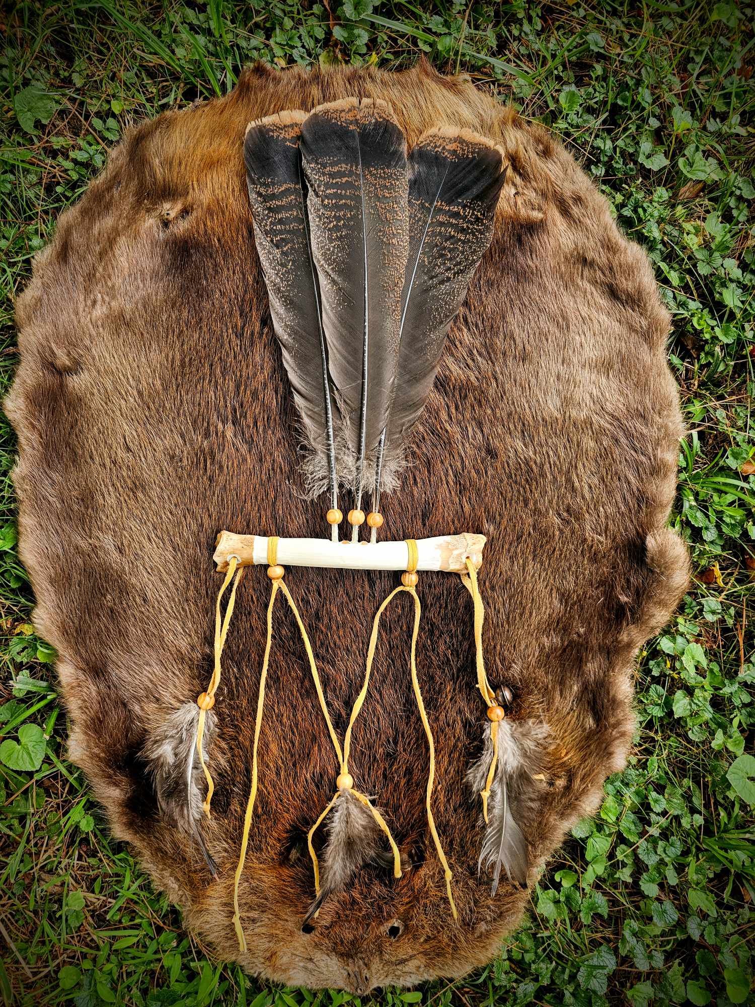 Wild Turkey Feather Deer Leg Bone Smudge Smoke Fan